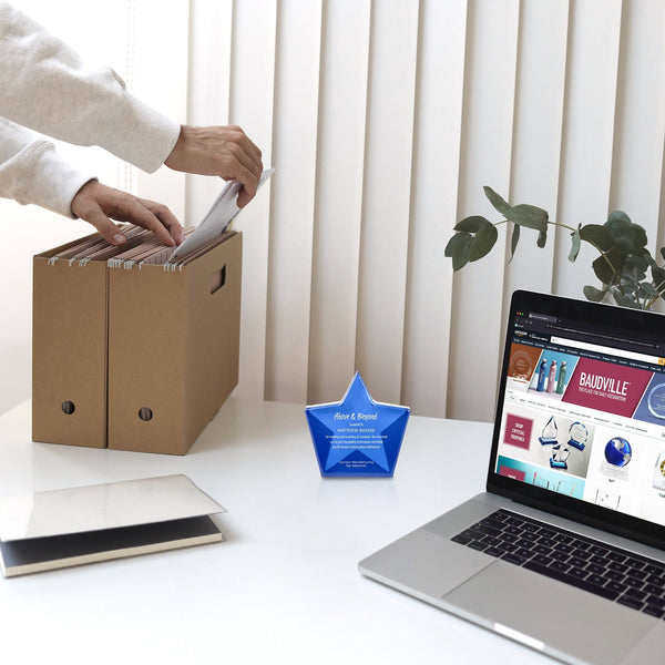 This small, but mighty acrylic Tribute Trophy is a colorful and affordable way to show your appreciation. Choose from a variety of pre-written award verses and add up to three lines of personalization to make a special award. Chisel shape is only available in the black laurels design.