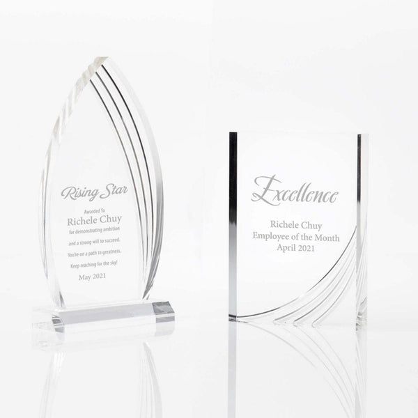 Unlike traditional glass or crystal, acrylic awards are lightweight, durable, and highly customizable. With a variety of engraving options, colors, and shapes, these awards are designed to fit any event or recognition need.