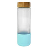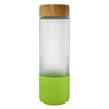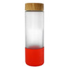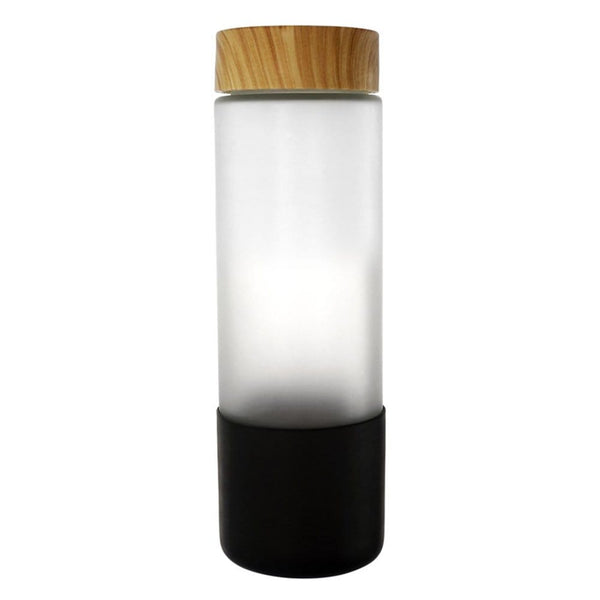 • Sleek glass bottle features a bamboo top and a soft-touch sleeve