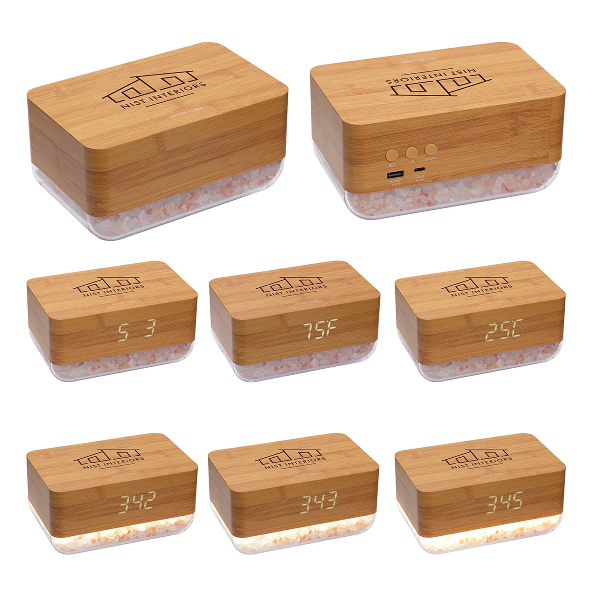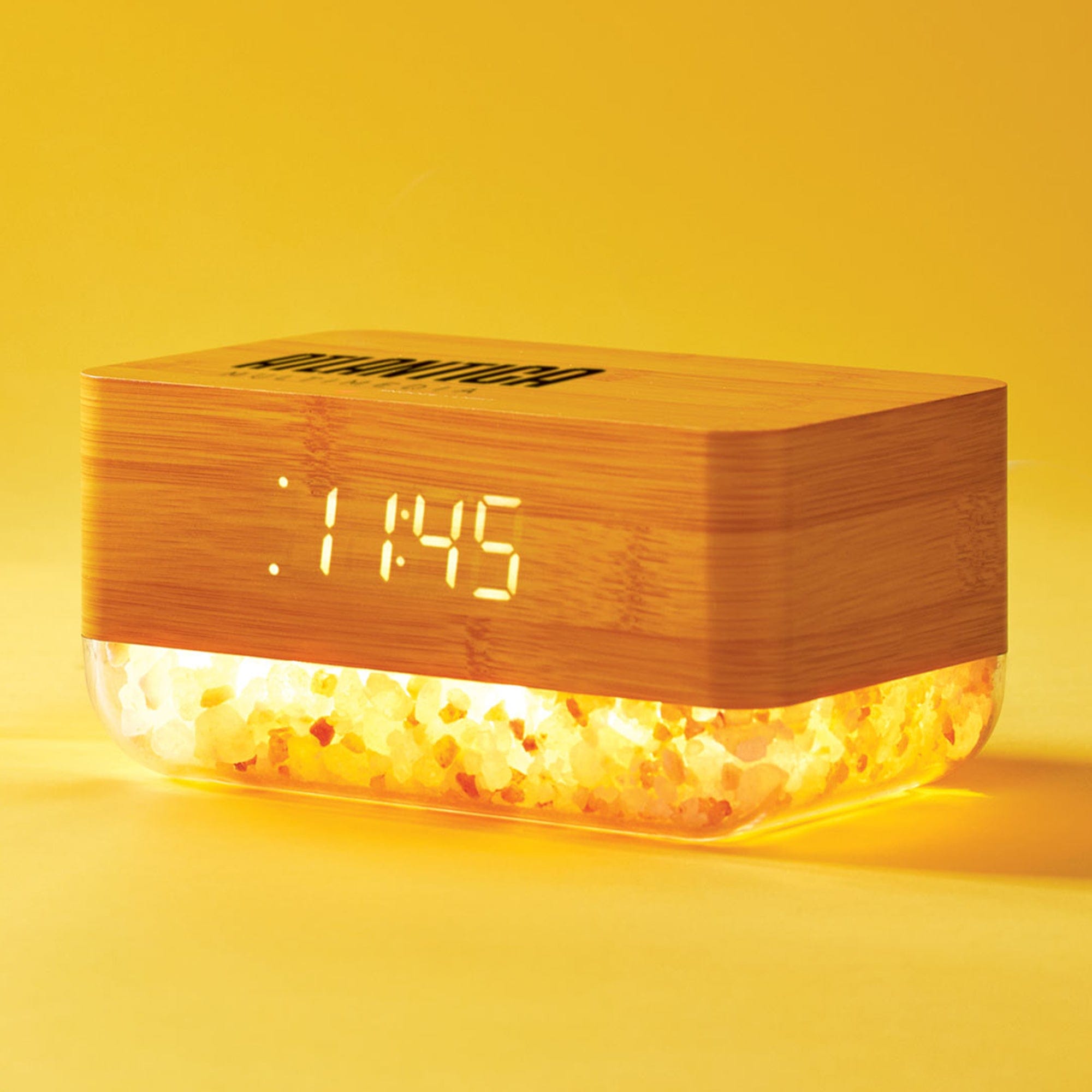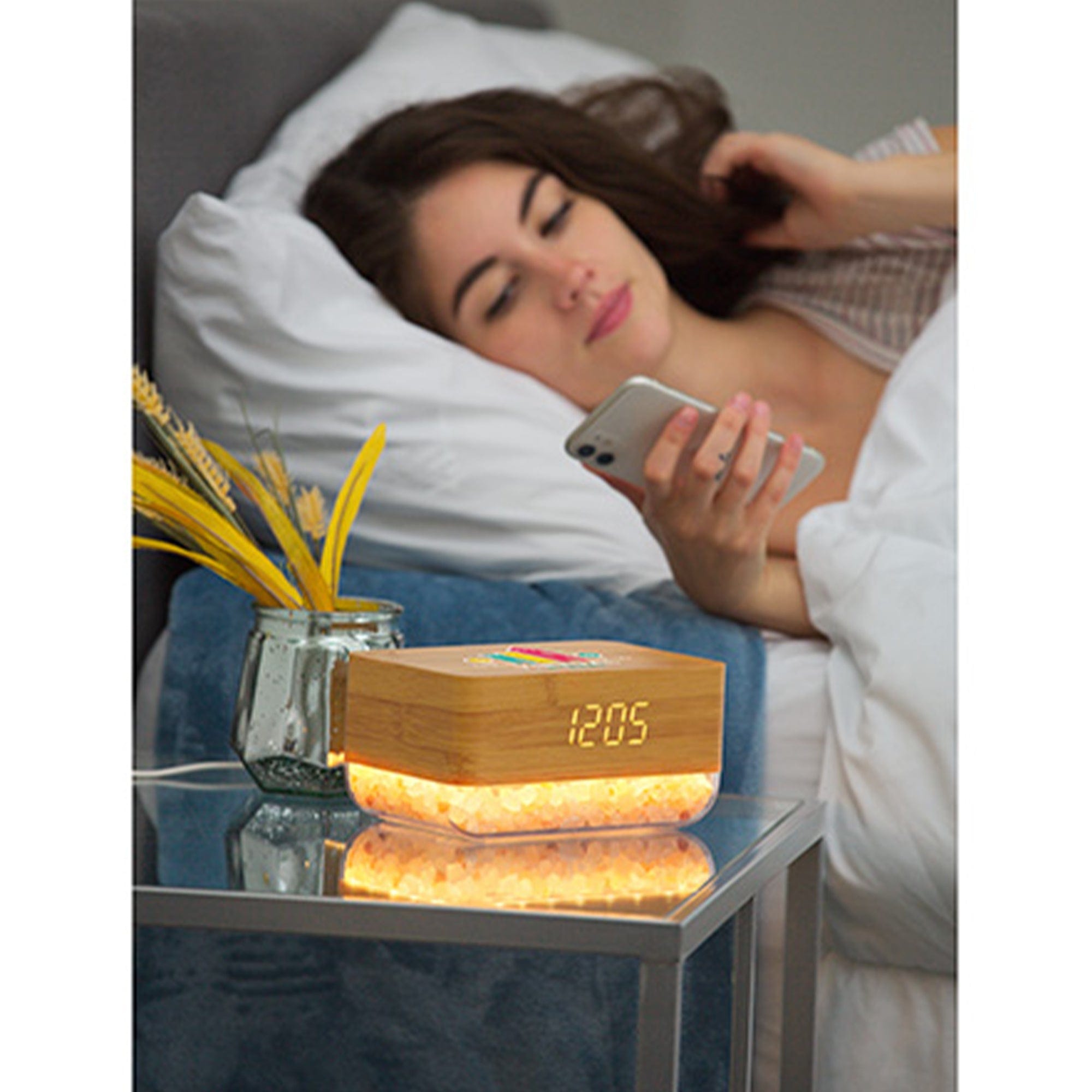 Add Your Logo: Himalayan Salt Sunrise Alarm Clock Charger-BAMBOO
