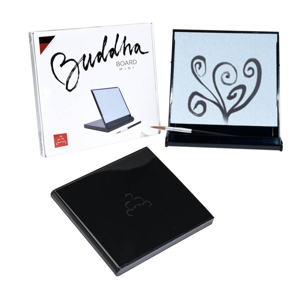 - Portable Mini Buddha Board folds into its own small easel stand, making it the perfect desk topper!