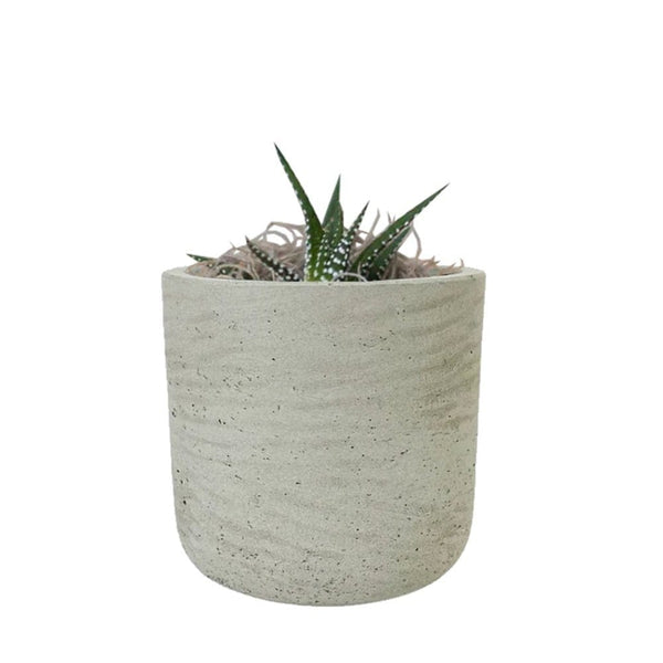 Elevate your office space with the Stone Finish Mini Pot with Succulent, crafted from premium Fiberstone composite. Featuring a textured stone finish and a weighty feel, this pot adds a touch of luxury to any desk. Its minimalist design effortlessly complements any office decor, making it a versatile choice for any environment.
