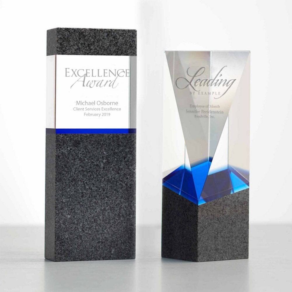 Put weight behind your recognition with this beautiful granite award. It's blue highlights accent their achievements perfectly. Choose a Baudville exclusive verse and up to three lines of personalization to make your award unique.