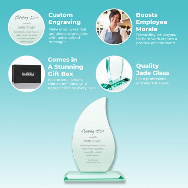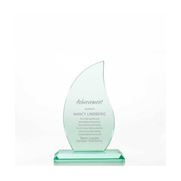 Top-quality trophies have never been so affordable! This premium large flame-shaped jade glass award trophy includes engraving and your personalized message! Choose from a variety... Read More