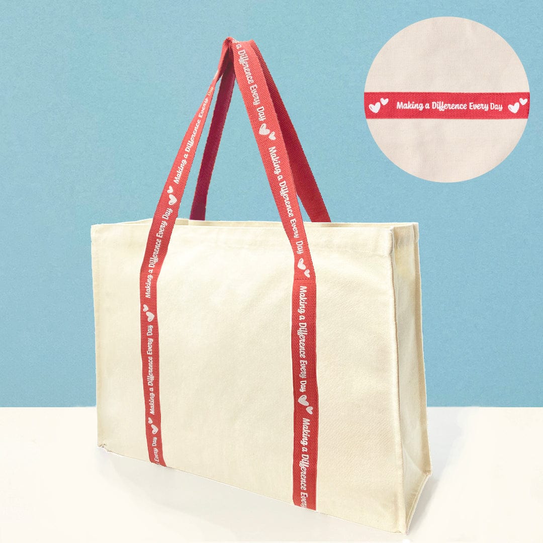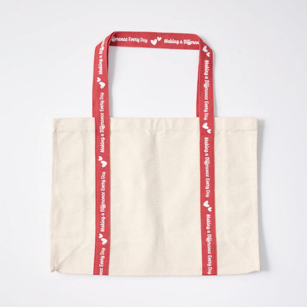 The strap carries an inspiring message, "making a difference every day," repeated in a design that will motivate your team wherever they are. Whether you’re celebrating employee achievements, welcoming new hires, or gearing up for a tradeshow, this tote is the perfect way to share your appreciation.
