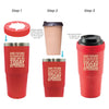 - Fits over small to extra-large disposable plastic or Styrofoam cups for on-the-go convenience