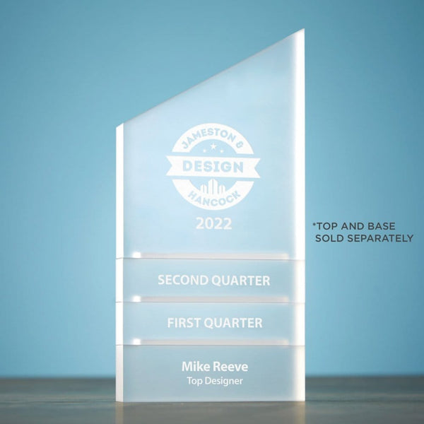 They have reached the peak of performance. Award them with an elegant keepsake they won't take their eyes off of. This stackable perpetual award starts the foundation with a base and top that has room to include a logo and up to three lines of personalization. As the years or accomplishments go on, add inserts to make the trophy truly their own.