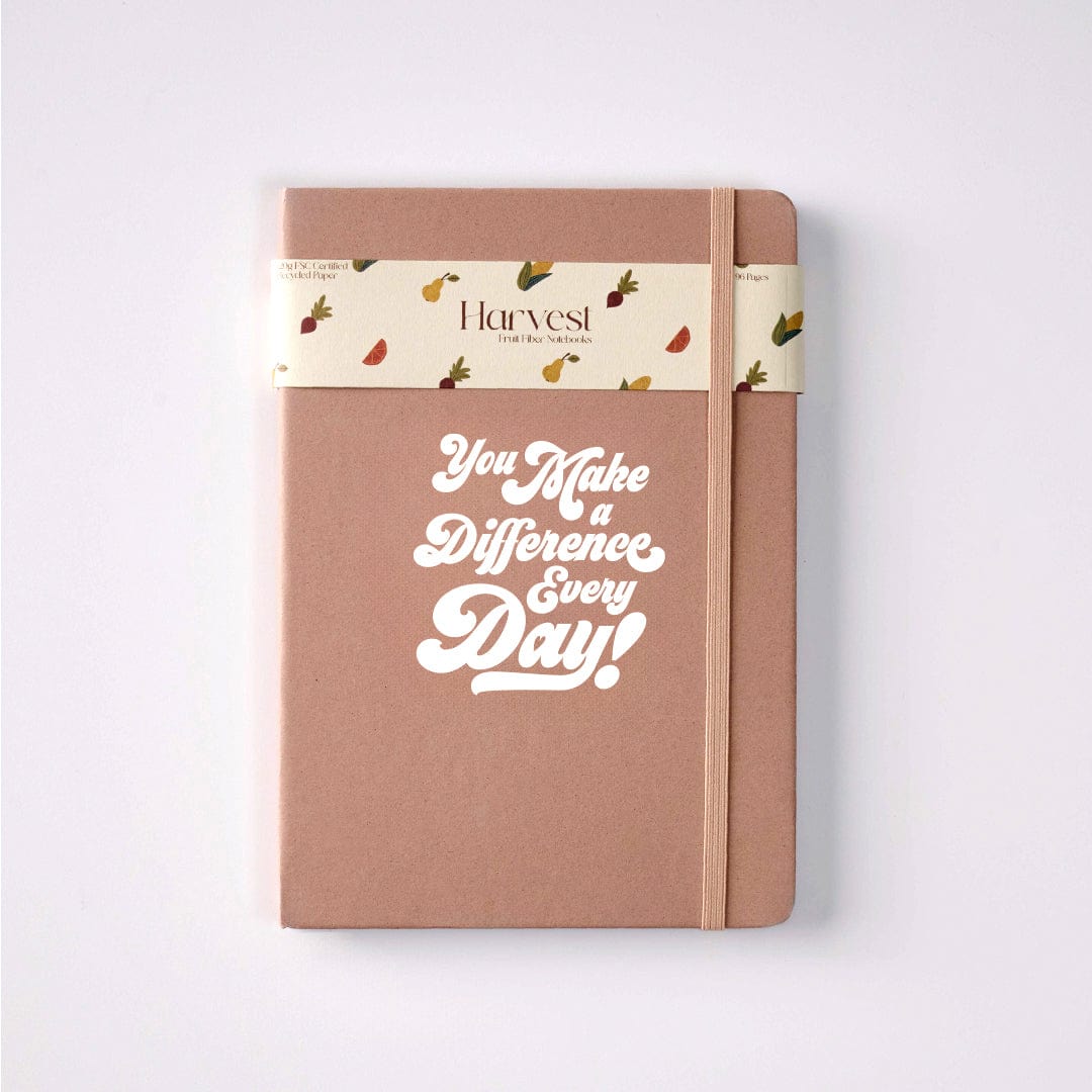 Meet the Harvest Fruit Fiber Notebook - Make a Difference, your new sustainable writing companion that truly stands out! With a cover made from recycled Hazelnut fibers, this 6 x 8.5" notebook is as eco-friendly as it is stylish. Inside, you'll find 96 lined pages of 100% recycled paper, providing the perfect canvas for all your creative thoughts and to-dos.