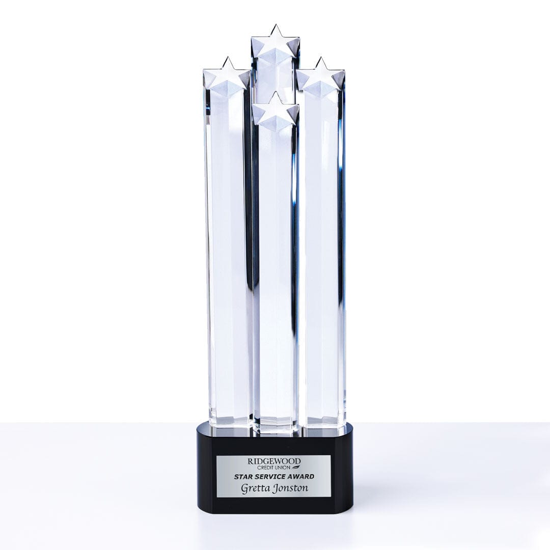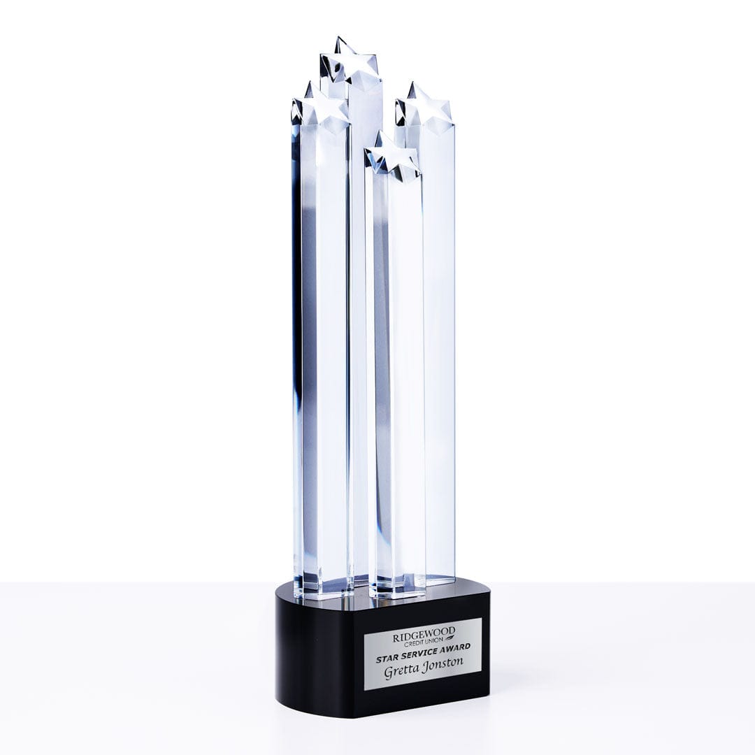 Celebrate the pinnacle of achievement with the Beaming Excellence Trophy, an executive award designed for your highest honors. This high-end, sleek crystal trophy features four... Read More