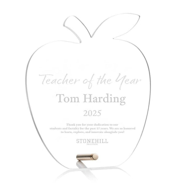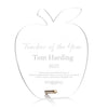Show your appreciation for the educators who shape the future with the Crystal Clear Apple Award. Designed in a timeless apple shape, this 6” x 7” acrylic award is a symbol of knowledge, dedication, and gratitude. With three lines of custom engraving and a logo imprint option, this sleek and modern award is perfect for recognizing teachers, school staff, and administrators who make a lasting impact. Whether for Teacher of the Year, retirement celebrations, or staff appreciation, this trophy is a standout keepsake that honors their hard work with elegance.