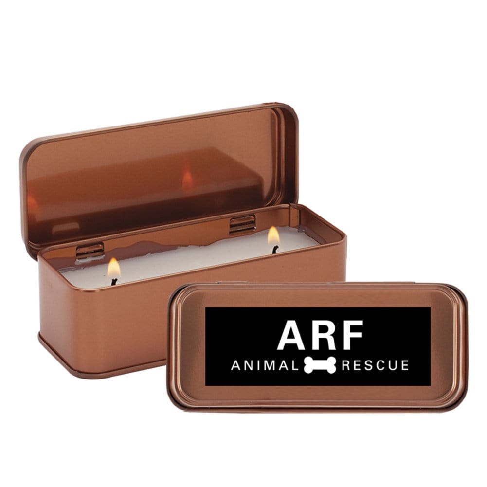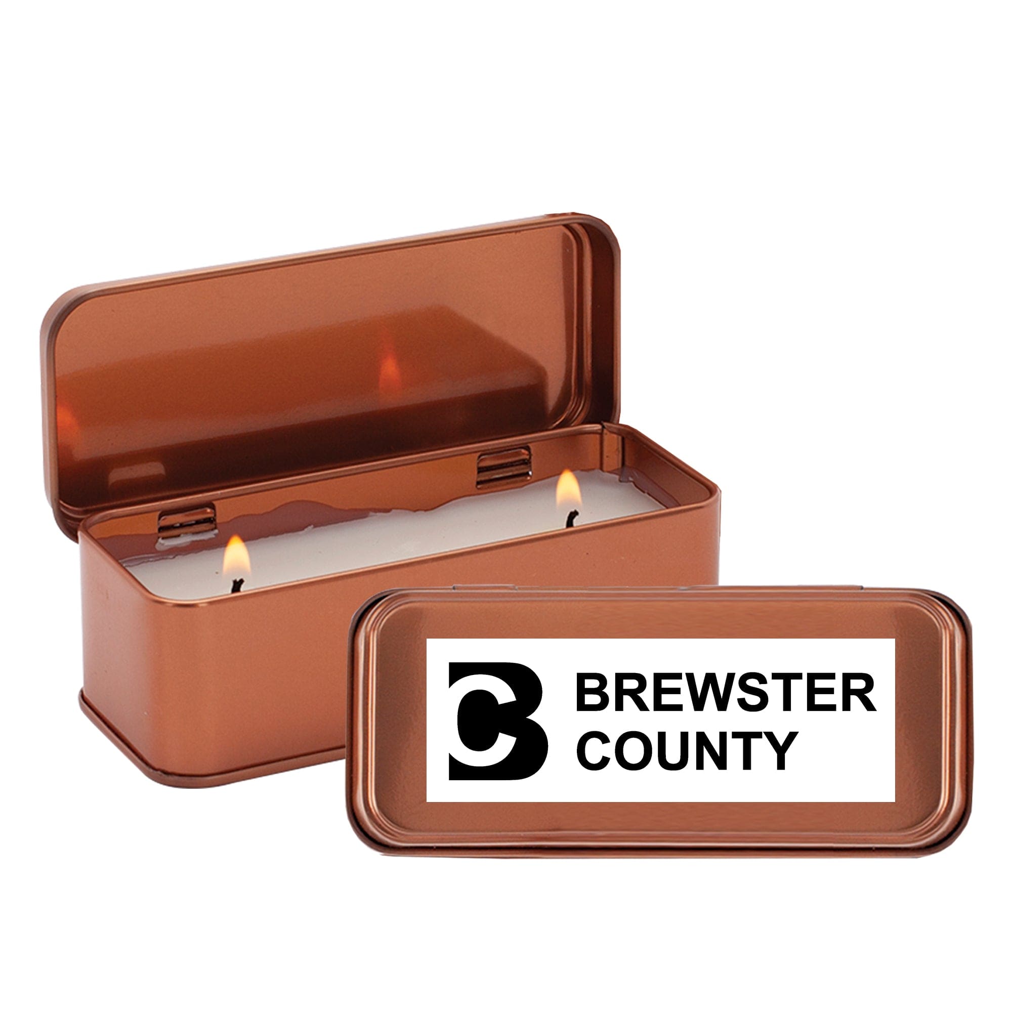This rectangular scented candle will have them daydreaming about your brand on their most relaxing weekends. Your branded lid will stay conveniently attached thanks to it's sturdy hinge opening. With a branded label and metallic copper tin, it's a high-end, calming way to make them burn for more. Dimensions: 4 1/4" W x 1.375"H x 1.75 "D