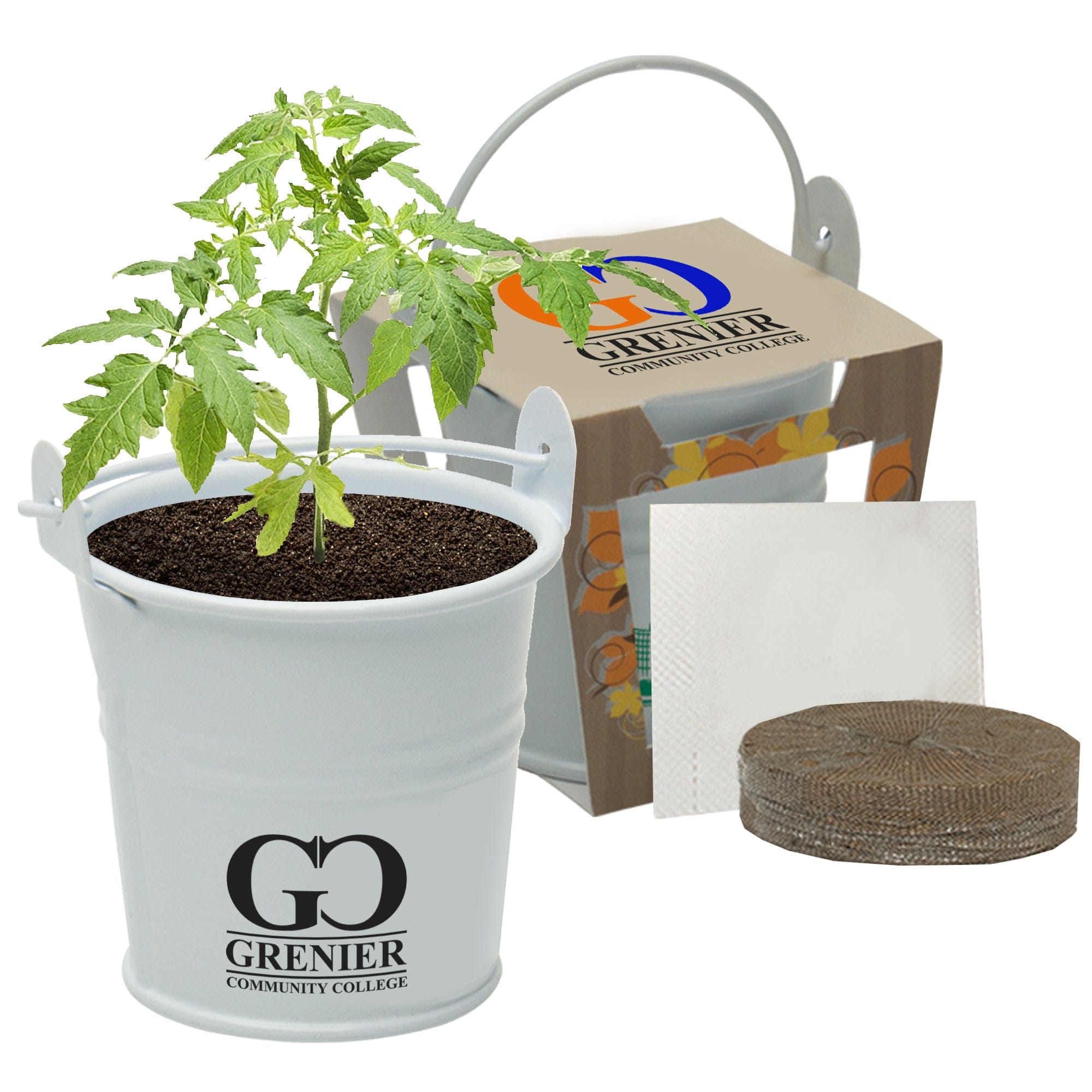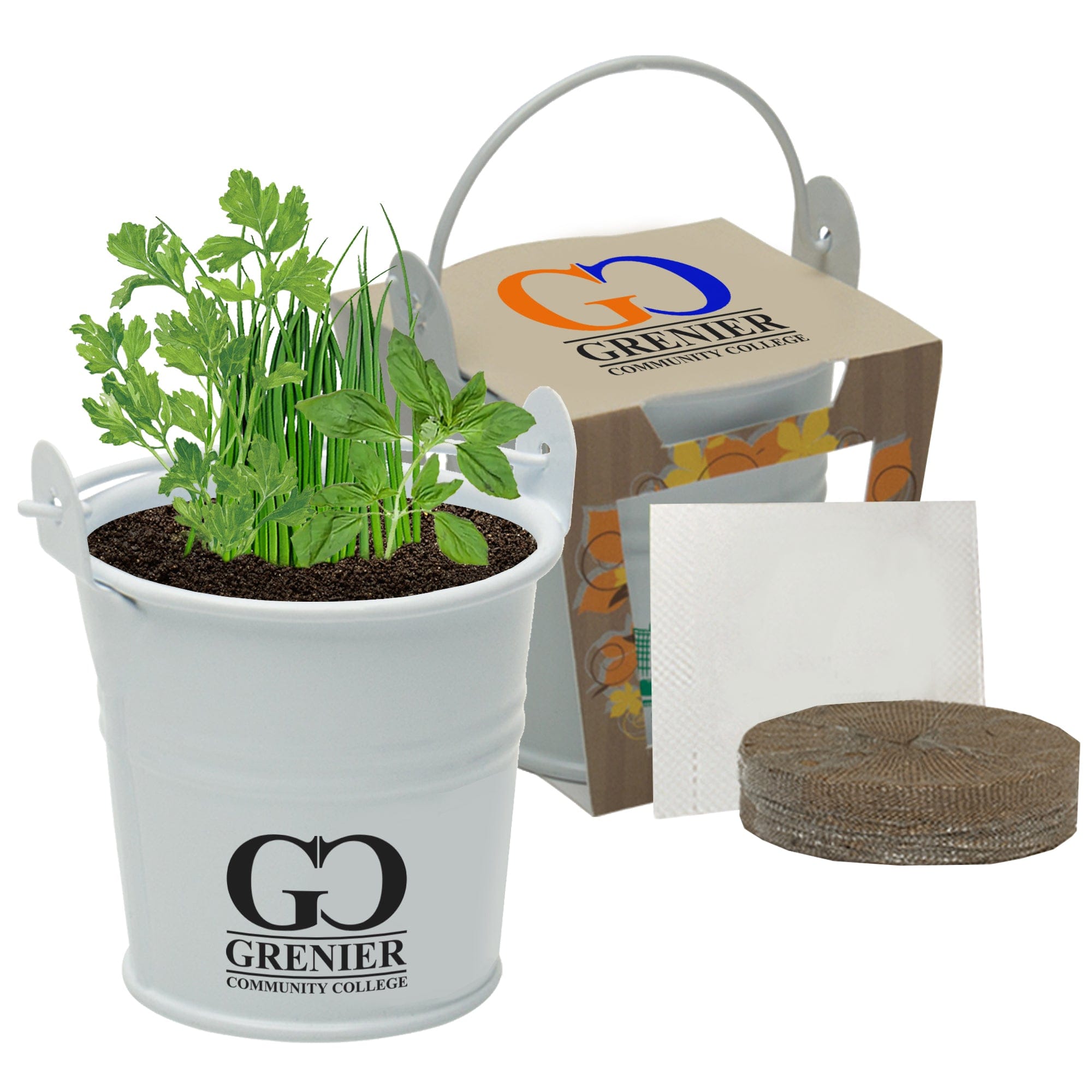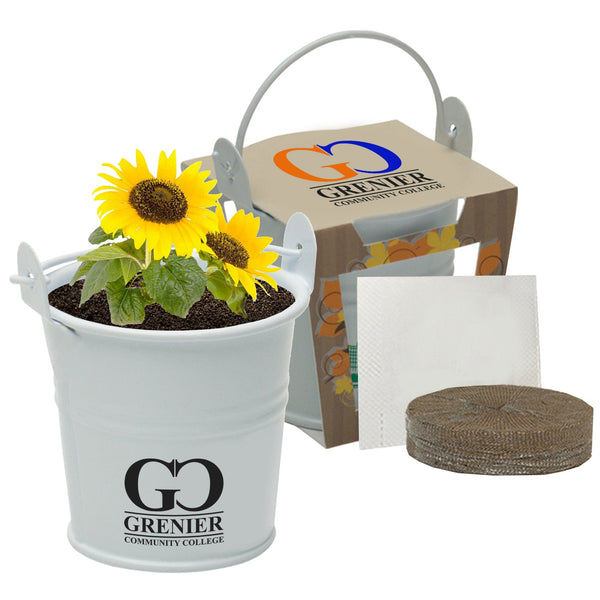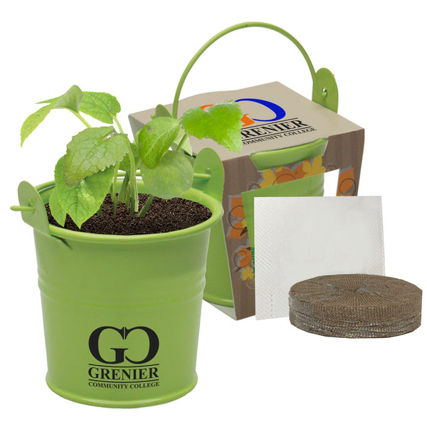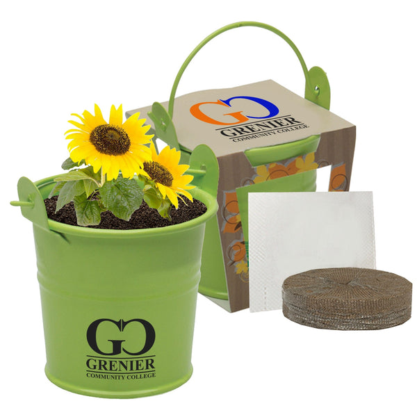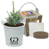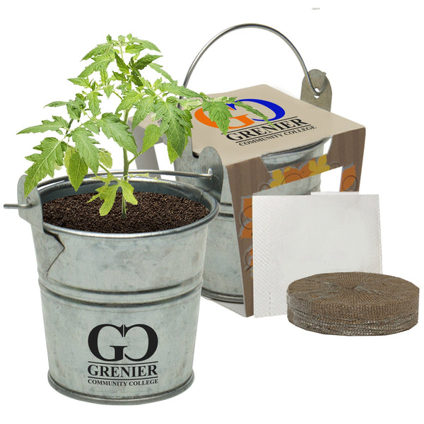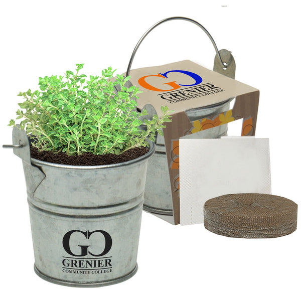 Deliver a fresh impression with a charmingly festive mini pail blossom kit. Made from galvanized metal, they are rust-resistant and designed to retain their color and finish. Each kit comes with a mini can planter, seed packet, peat pellet, as well as planting instructions.