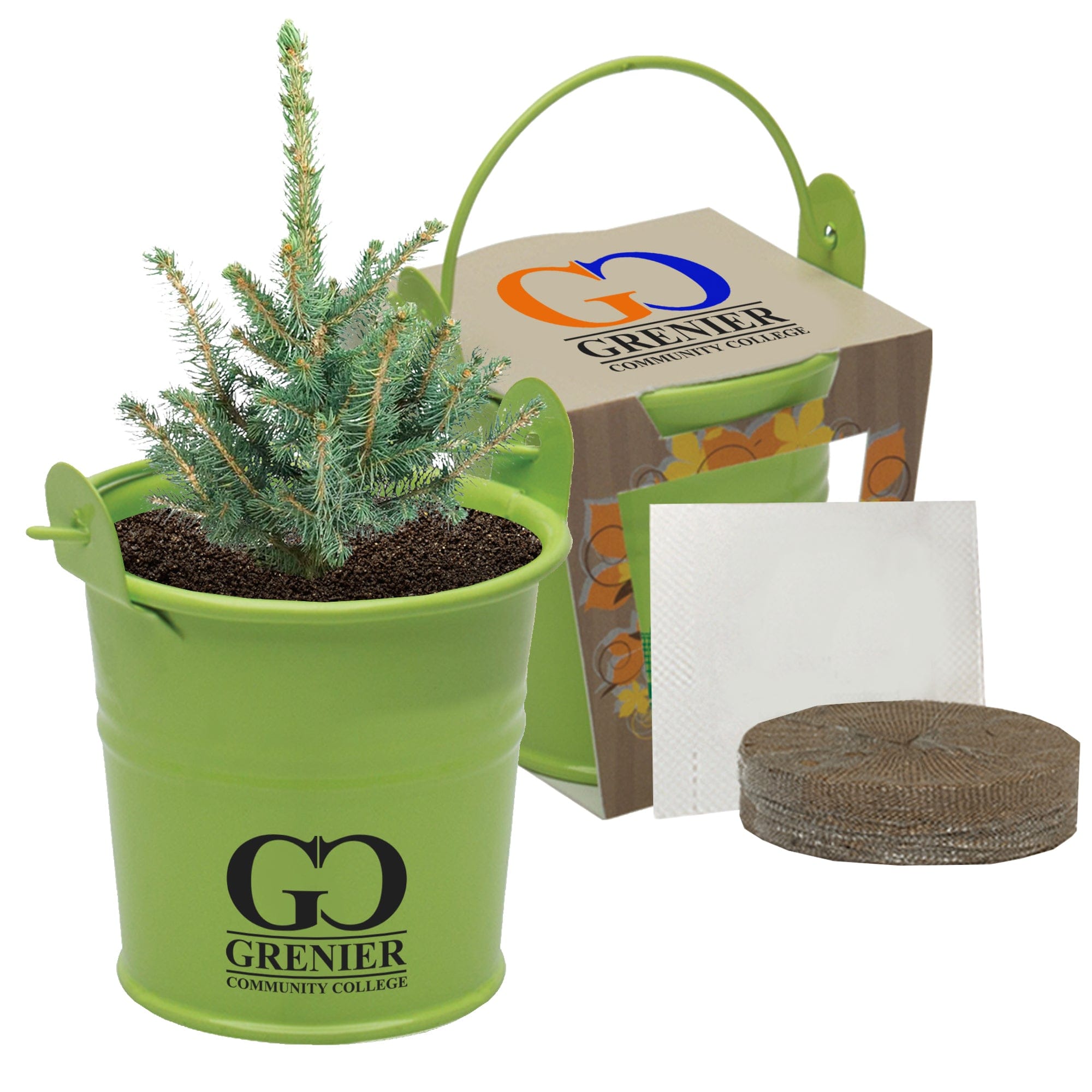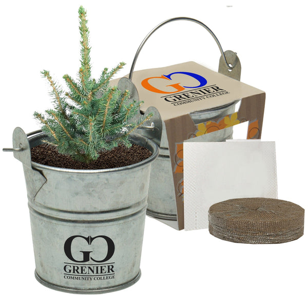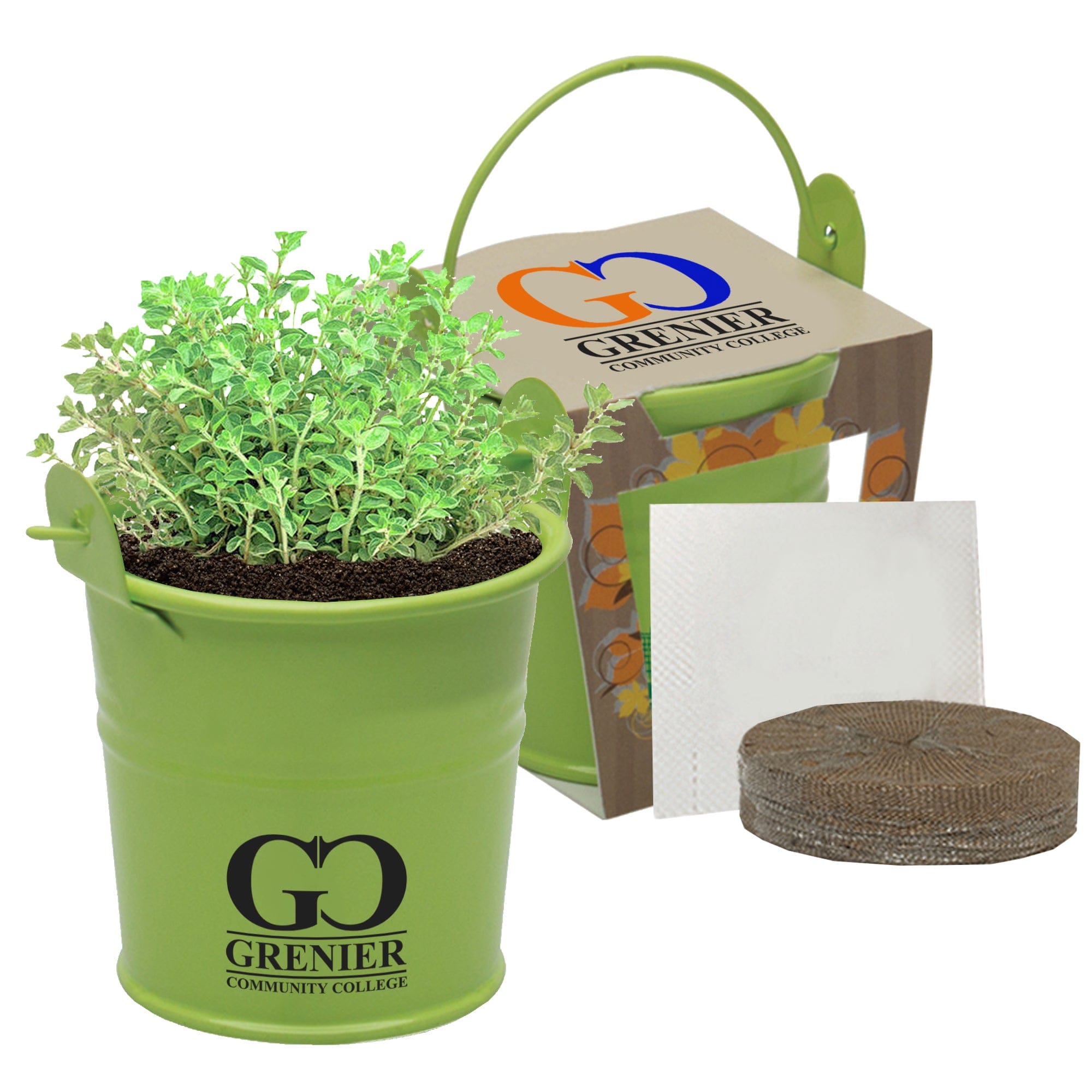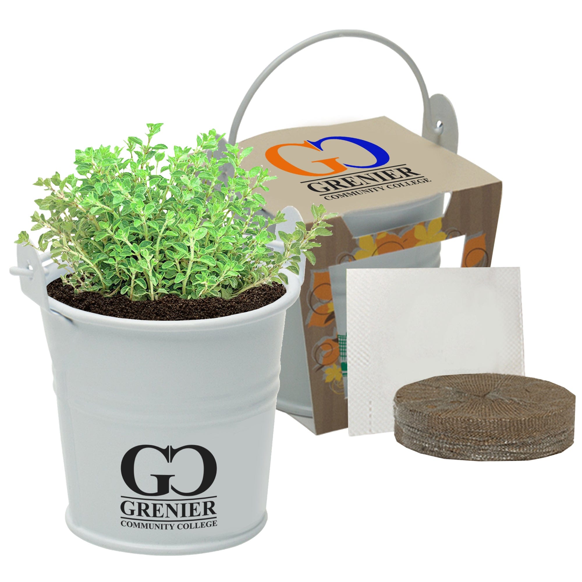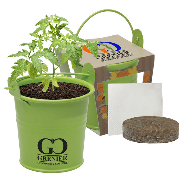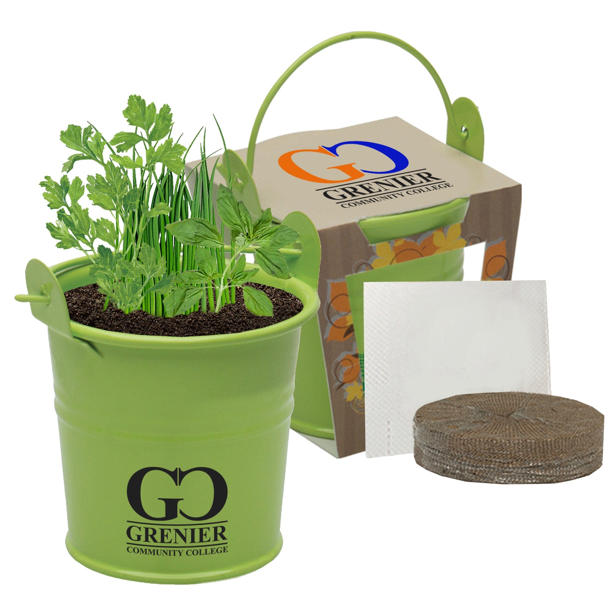 Deliver a fresh impression with a charmingly festive mini pail blossom kit. Made from galvanized metal, they are rust-resistant and designed to retain their color and finish. Each kit comes with a mini can planter, seed packet, peat pellet, as well as planting instructions.