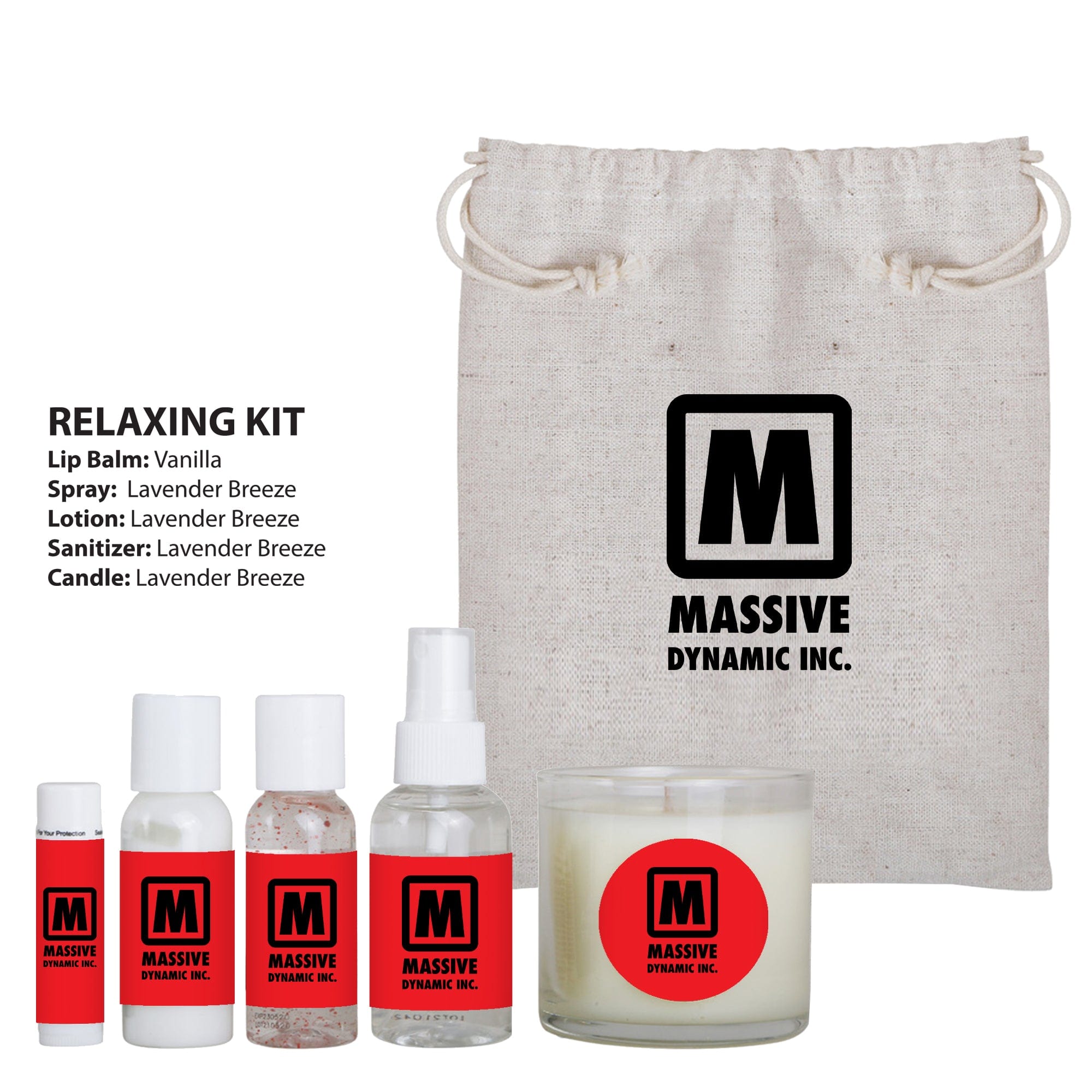 - RELAXING KIT includes: Vanilla Flavored Lip Balm and Lavender Breeze Scented Spray, Sanitizer, and Candle
