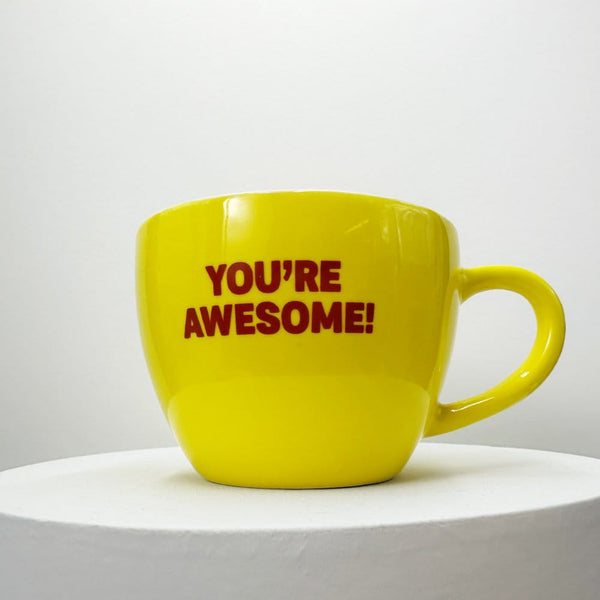 - Sleek yellow ceramic mug with bold “You're Awesome!” sentiment