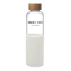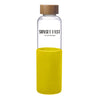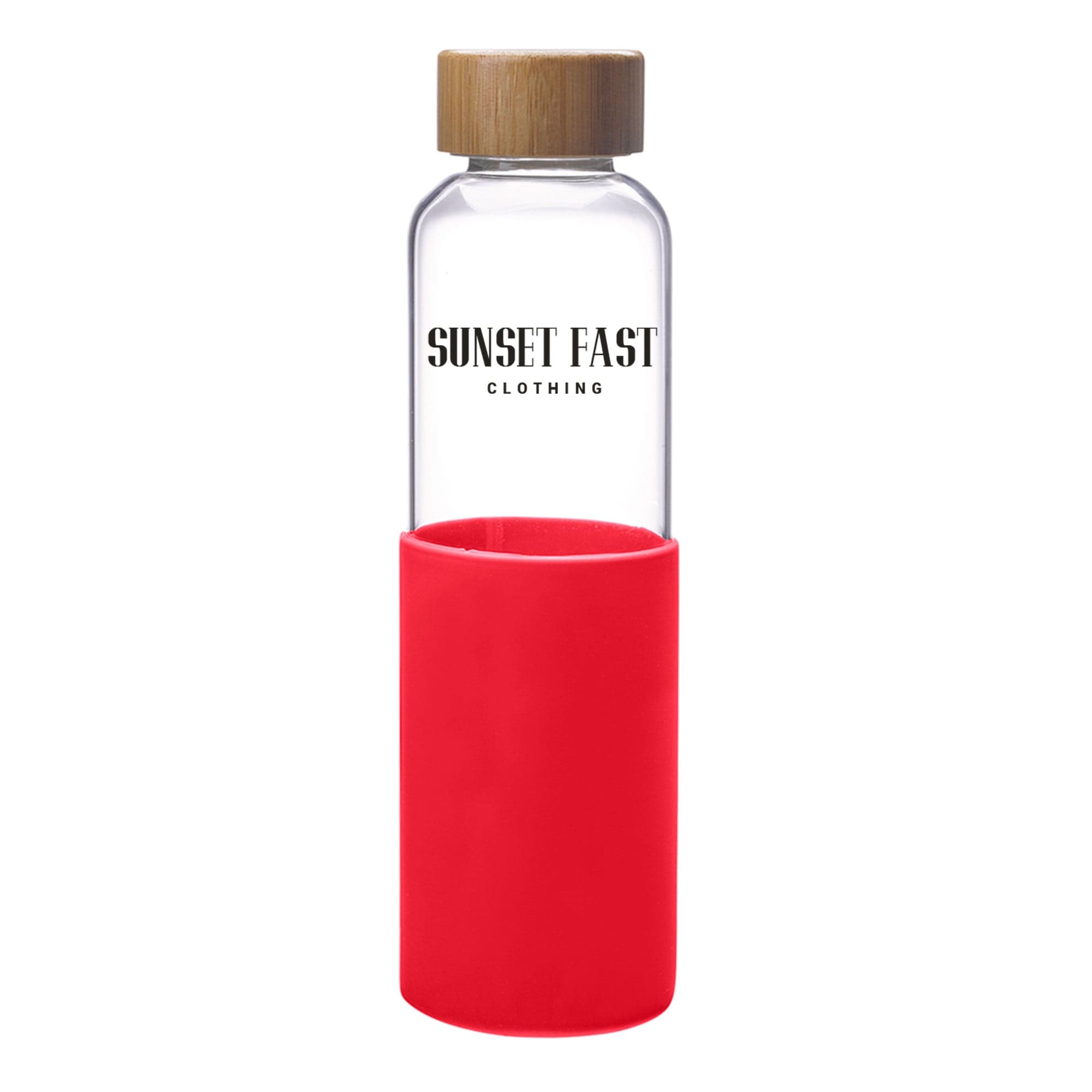 If we were picking a bottle for looks alone, this would be our favorite. Luckily, the glass water bottle has more to offer than style: it makes a bright impact with the protective silicone sleeve and keeps a pure taste with the glass bottle! The screw-on lid is a modern bamboo finish, and with this kind of style impact, your logo will be carried with them everywhere!