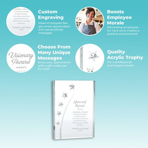 A beautiful star-accented trophy at an exceptional price! Included in the price is a pre-written verse and up to three lines of personalization. Read More