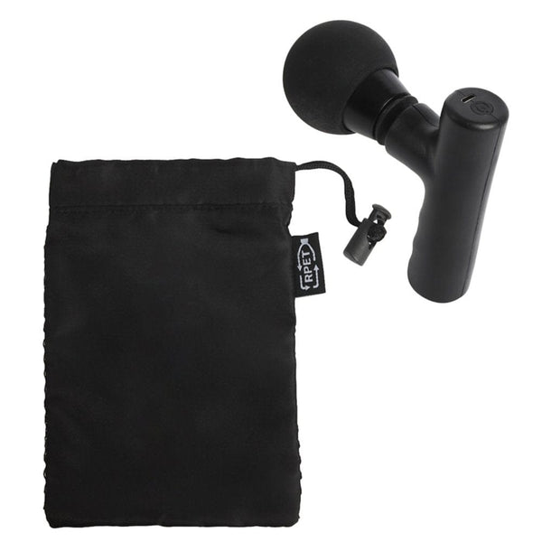 This massage gun isn't just for relaxation; it's designed for the corporate world on the go. It comes with a RPET (recycled water bottles) drawstring pouch and a USB-C to USB-A charging cable for effortless storage and travel convenience.