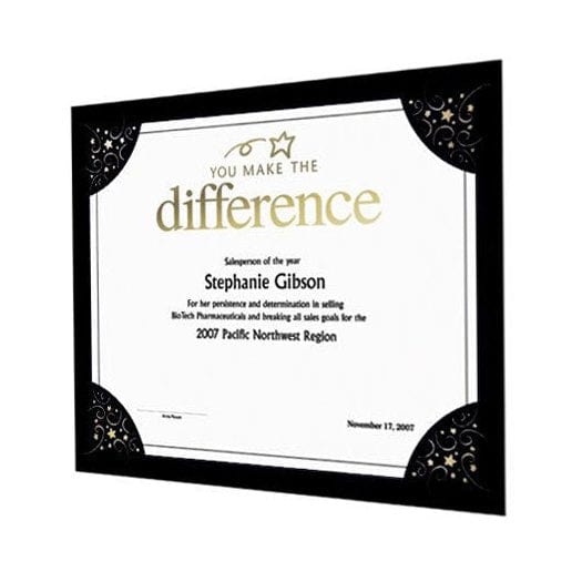 Present and display your awards with our paper cubicle wall displays. Each display is made of fabric-textured, heavy weight black card stock with a decorative ornate foil design. Includes Velcro for hanging. Certificate paper not included. Priced individually and sold in increments of 25.