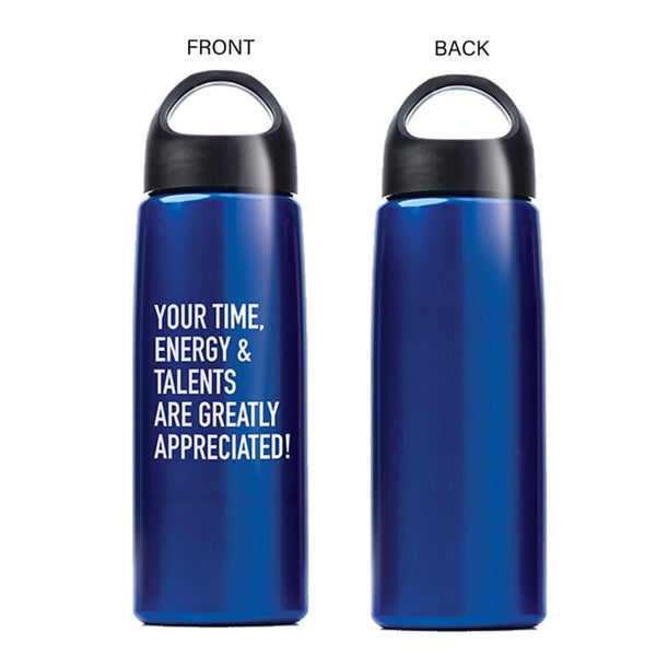 Your appreciation will radiate on this sleek water bottle. It features a wide-mouth for easy filling and is top rack dishwasher safe! Add personalization or a logo to make it truly one of a kind!