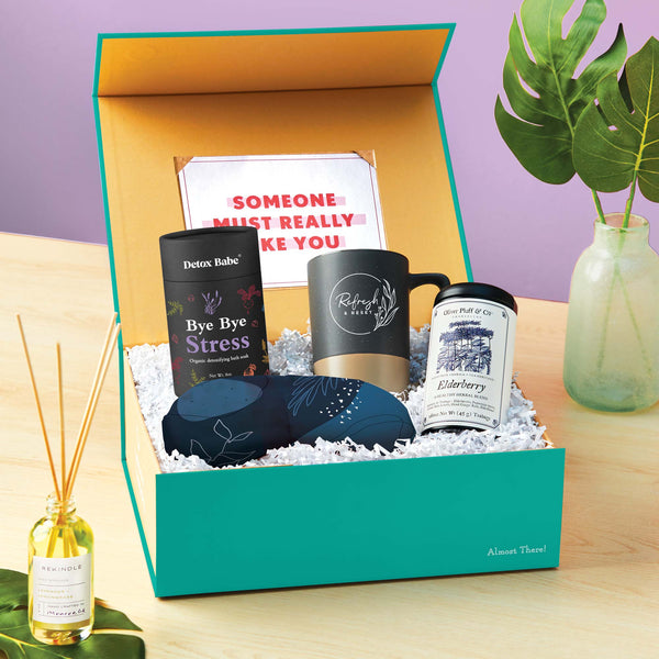 Help your team find inner peace with a kit that they can use to relax and unwind! Includes: Stone mug | Eye mask | Bath...