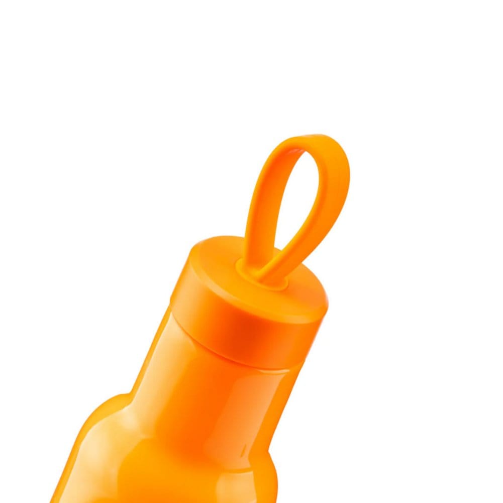 - Bright orange bottle has a vibrant, monochromatic look for standout style