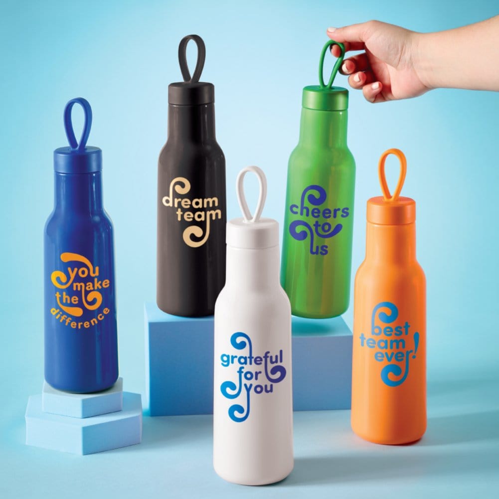 Fill the Loopy Bottle with sweet treats or pair it with a tote bag to create a one-of-a-kind gift set that your team members will love. Whether it's for morning commutes, meeting marathons, or post-work gym sessions, this bottle will soon become an everyday essential for your hardworking team.