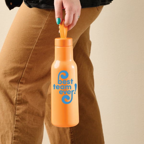 Introducing the 22 oz Loopy Bottle - Best Team Ever: a vibrant and eco-friendly way to show appreciation for your amazing team! This bright orange bottle boasts a monochromatic look that's sure to stand out in any setting. Made from PLA material derived from renewable resources like corn starch and sugar cane, this bottle is as sustainable as it is stylish.