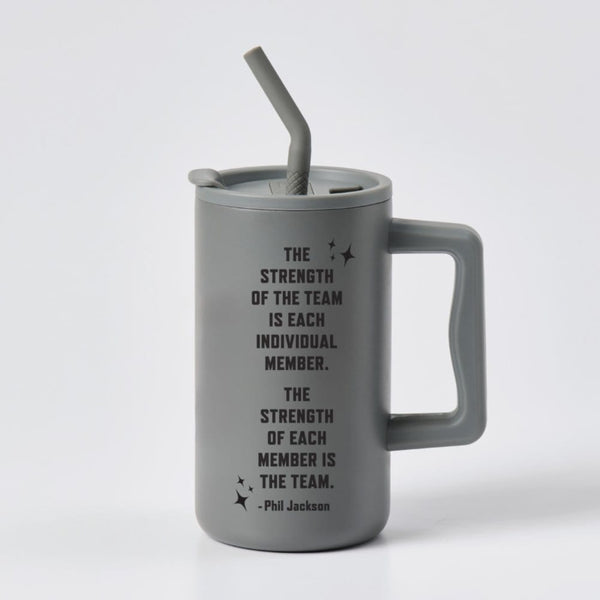 Featuring a double-function screw-in lid with both a drinking spout and a straw, this mug is versatile and user-friendly. But what truly sets this mug apart is its inspiring quote from Phil Jackson: "The strength of the team is each individual member. The strength of each member is the team." This powerful message not only shows your appreciation and gratitude but also sparks motivation and inspiration within your team. Plus, with every purchase, 1% of proceeds is donated to Water.org, a nonprofit organization that provides millions with access to safe water and sanitation.