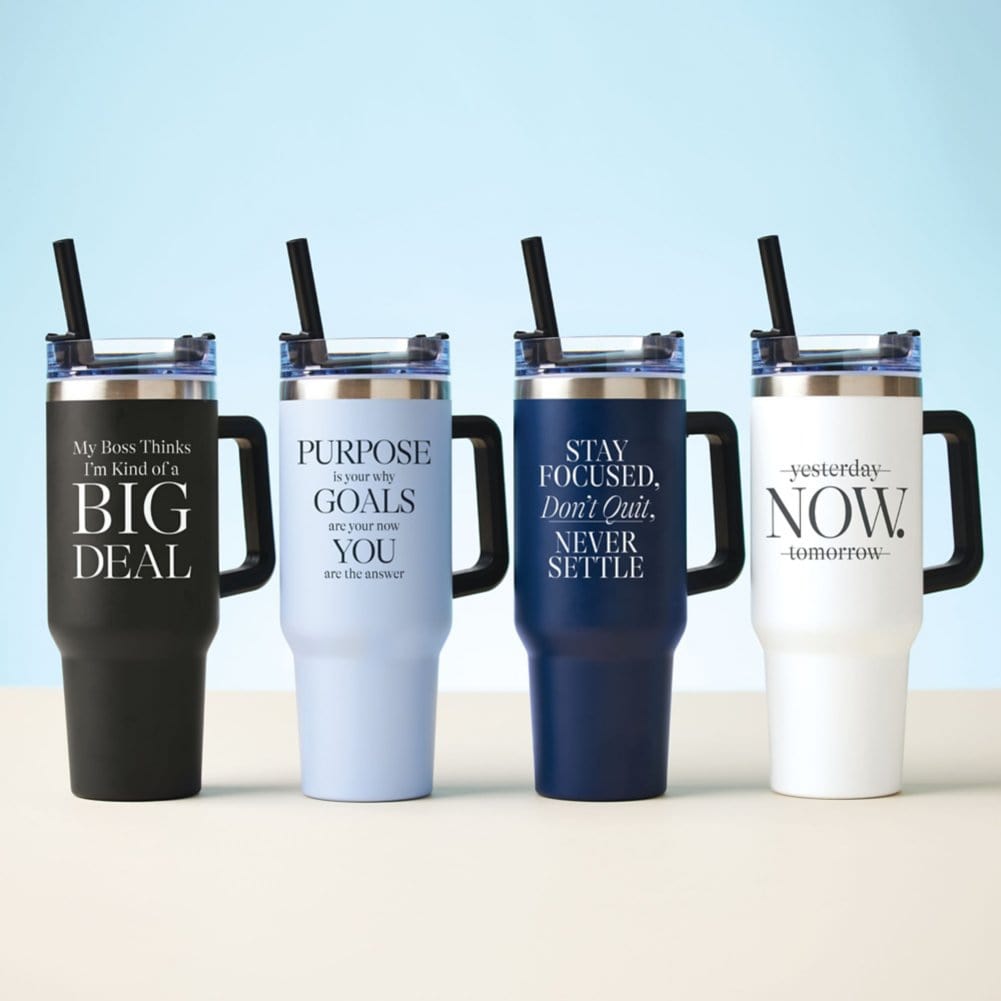 More hydration with fewer refills? Sign me up! The 40 oz Thirst Quencher Tumbler - Purpose Is Your Why - is an absolute must for morning commutes, long hours at the office, road trips, and everything in between. Featuring double wall insulation to keep your H2O cold all day long, it's the ultimate hydration and appreciation 2-in-1. Perfect for onboarding, everyday thanks, or special milestones, this trending tumbler is sure to show your employees just how thankful you are for their hard work day in and day out.