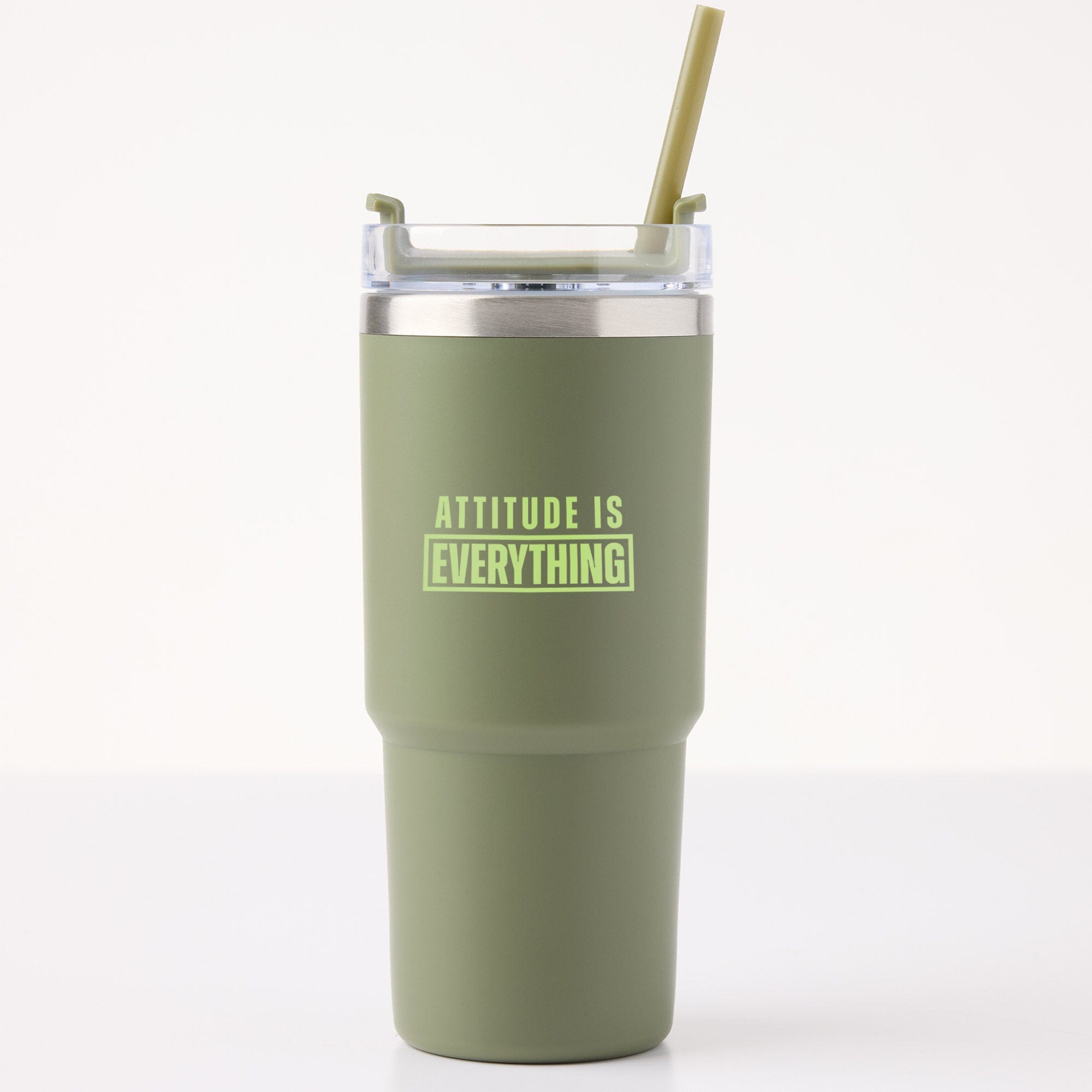 • 23 oz stainless steel tumbler features sleek, matte finish