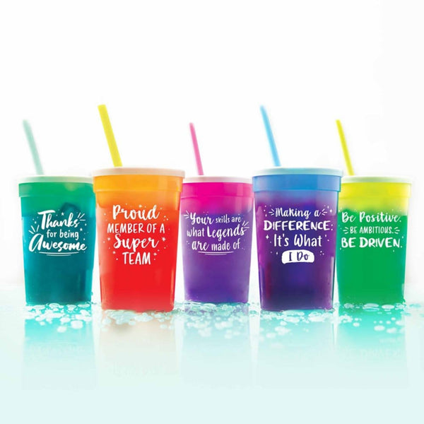 Baudville’s value drinkware has the bottom line in mind. We offer an assortment of drinkware options in fun bright colors with exclusive employee motivational phrases! Whether a water bottle, mug or tumbler, we’ve got a value for you!