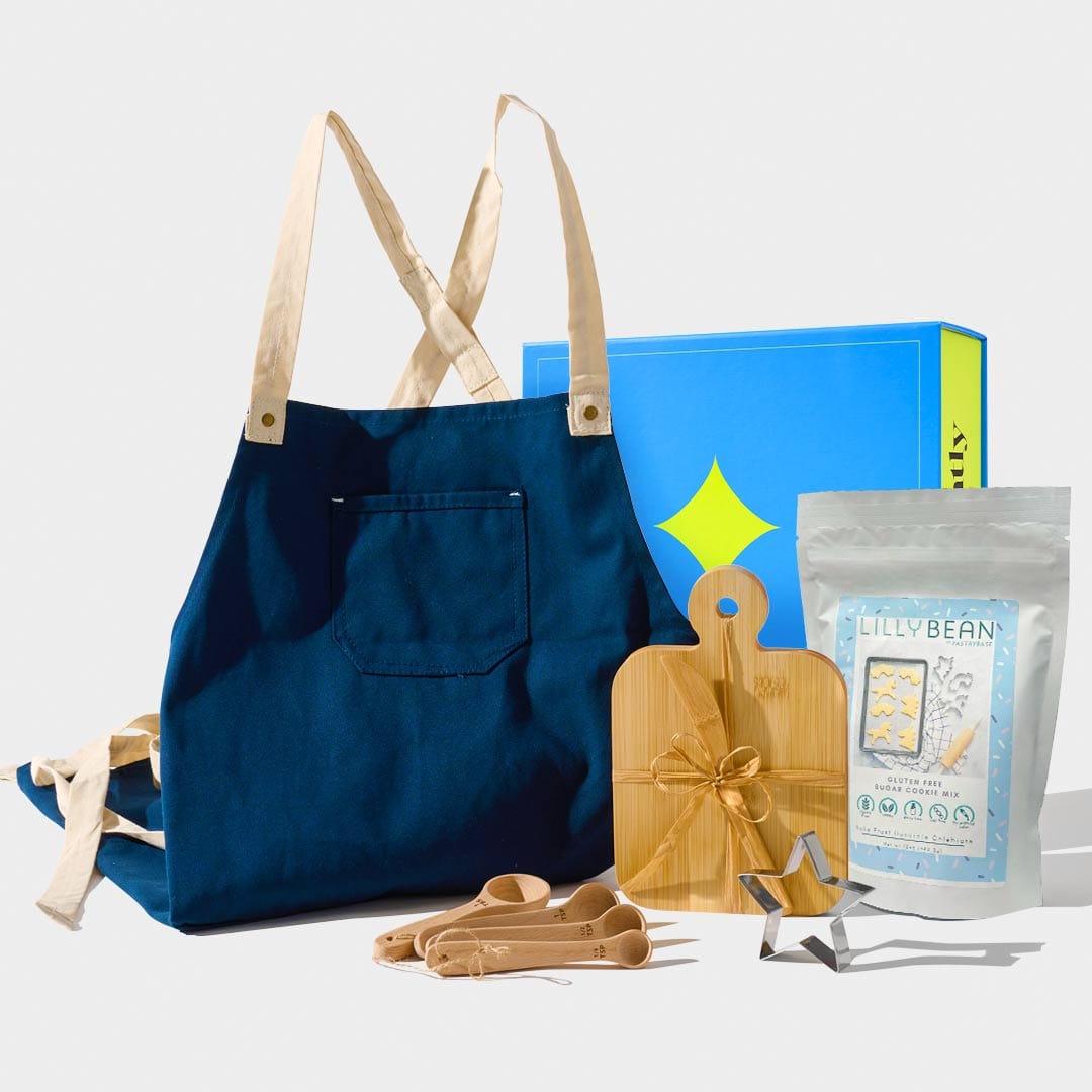 Get ready to bake up some holiday magic with the Baking Spirits Bright Kit! This fun and interactive set is perfect for the holidays and has everything you need for a delightful cookie night. Inside, you’ll find a Navy La Cuisine baking apron to keep you stylish and mess-free, a sleek bamboo serving set for all your baking needs, and a gluten-free sugar cookie mix to whip up delicious treats. The kit also includes a 4-piece wood measuring spoon set and a star cookie cutter to add a festive touch to your creations. Ideal for the whole family, this gift is wonderful for holiday gifting, client surprises, and everyday appreciation. It’s the perfect gift for any corporate occasion, bringing joy and sweet moments to all!