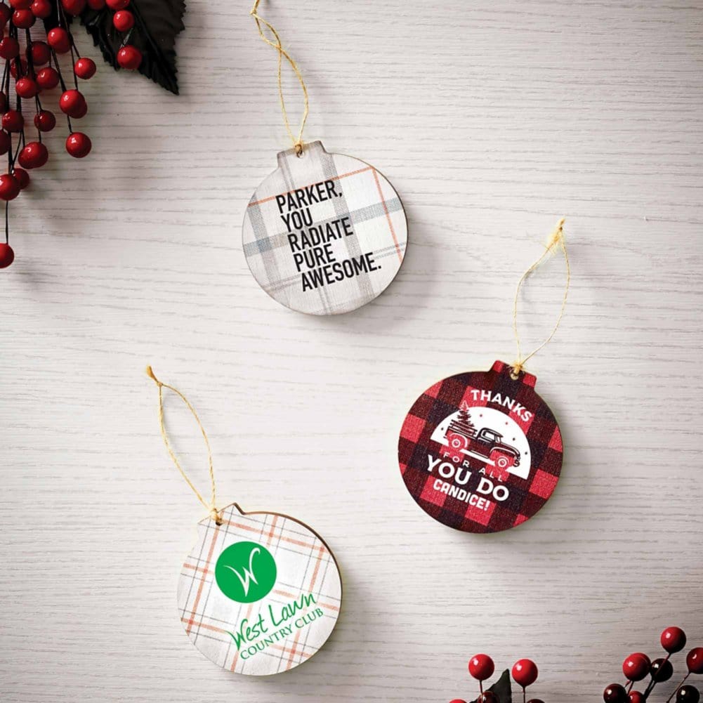 Custom: Holiday Wood Ornament - Red/Green Plaid