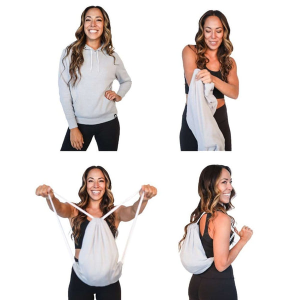 Introducing the 2-in-1 Hero Hoodie Lite Pullover, the ultimate combination of functionality and style. With its patented design, this hoodie effortlessly converts into a functional drawstring backpack in seconds, offering unparalleled convenience for your on-the-go lifestyle.