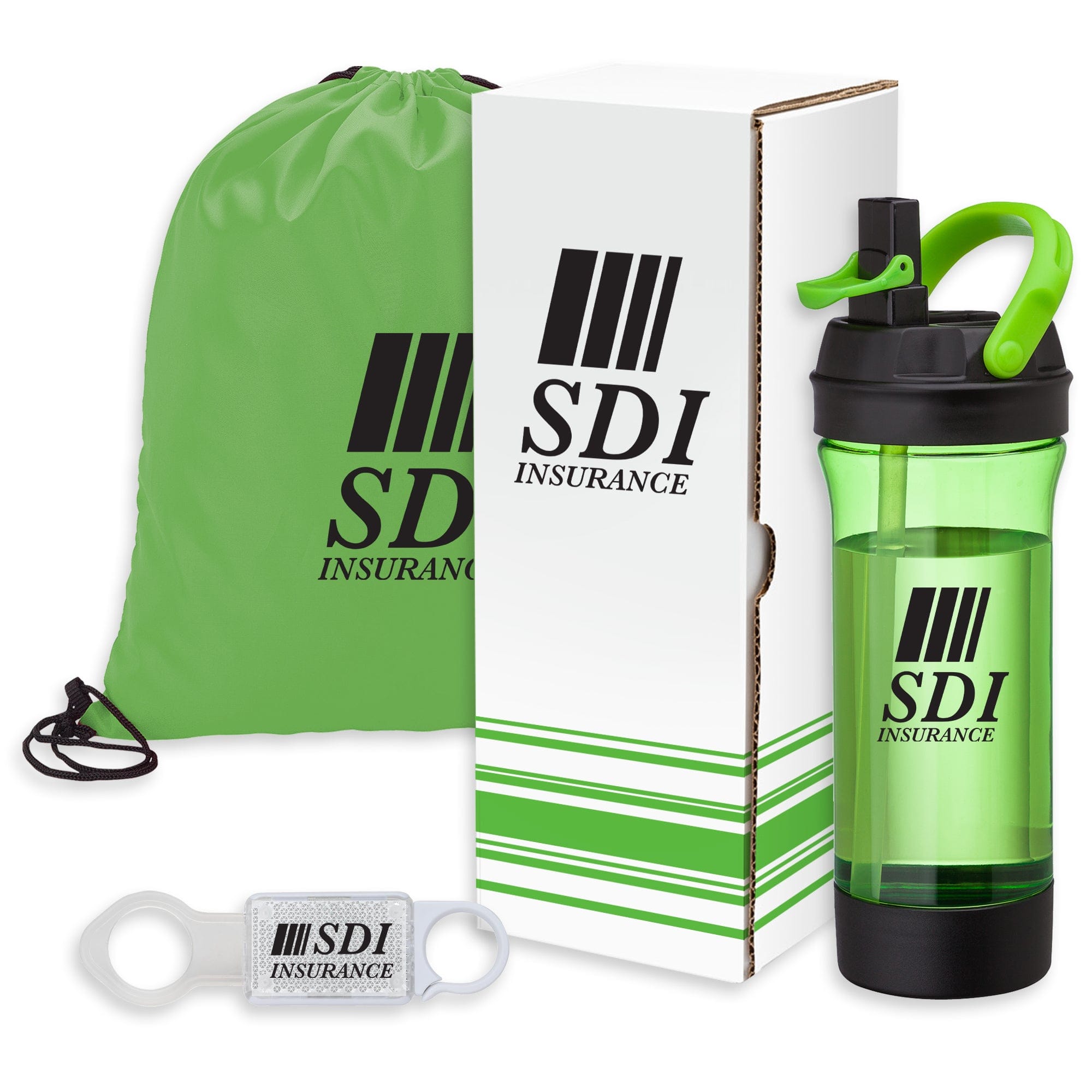 This gift set is perfect for your next wellness initative! Set includes a 25 oz. Tritan flip-spout bottle with integrated straw and carry handle, 4-in-1...