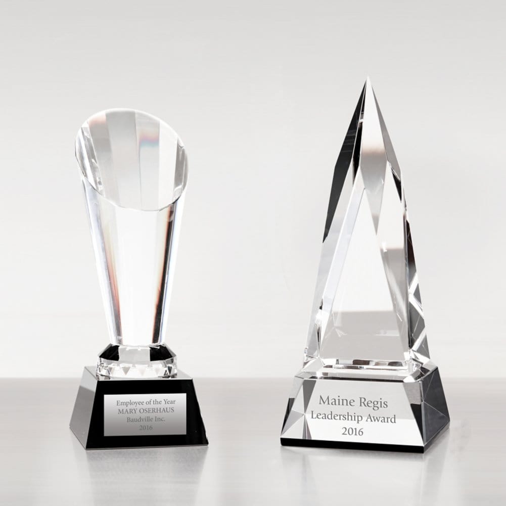Beveled Edge Crystal Black Accent Trophy - Tower