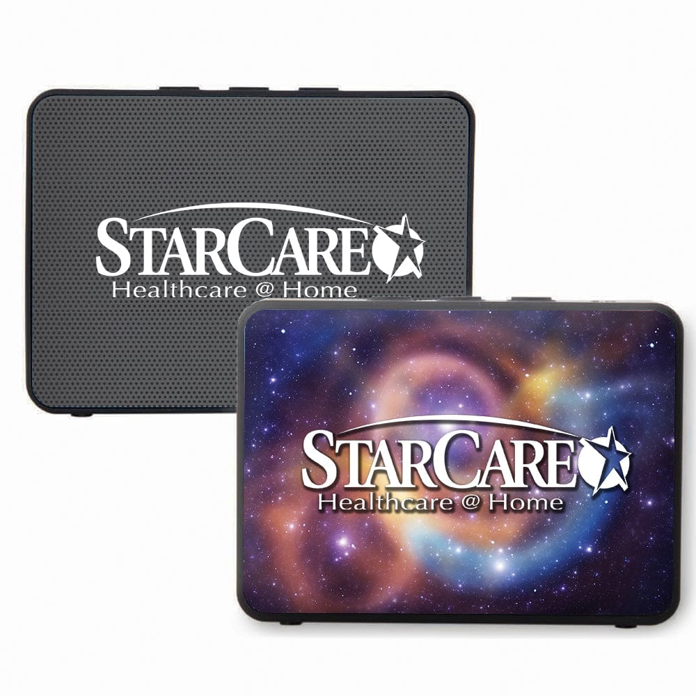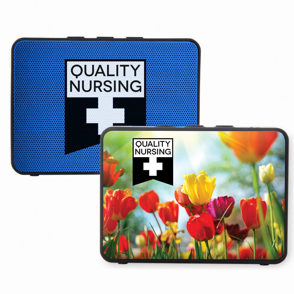The Boxanne Bluetooth Speaker delivers bold sound in a compact, travel-ready design. Its sleek, modern build and full-color branding surface make it a high-impact option for teams who love music and mobility.