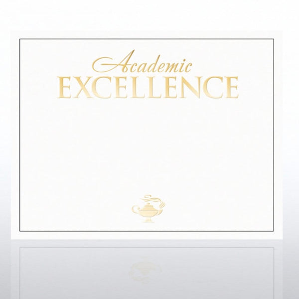 The Academic Excellence Certificate Paper Bundle comes with all the supplies to create 50 complete award certificates and saves you a bundle over ordering items separately! The bundle includes our most popular academic gold-foil certificates, coordinating presentation folders, embossed gold foil seals and award ribbons.