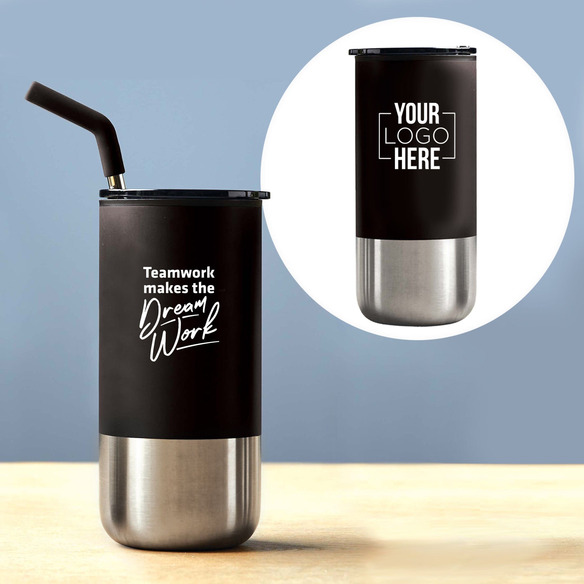 Drink your favorites hot or cold! Double-wall construction featuring sleek two tone design includes a straw and a press-on lid with slide-closure for easy use. Read More