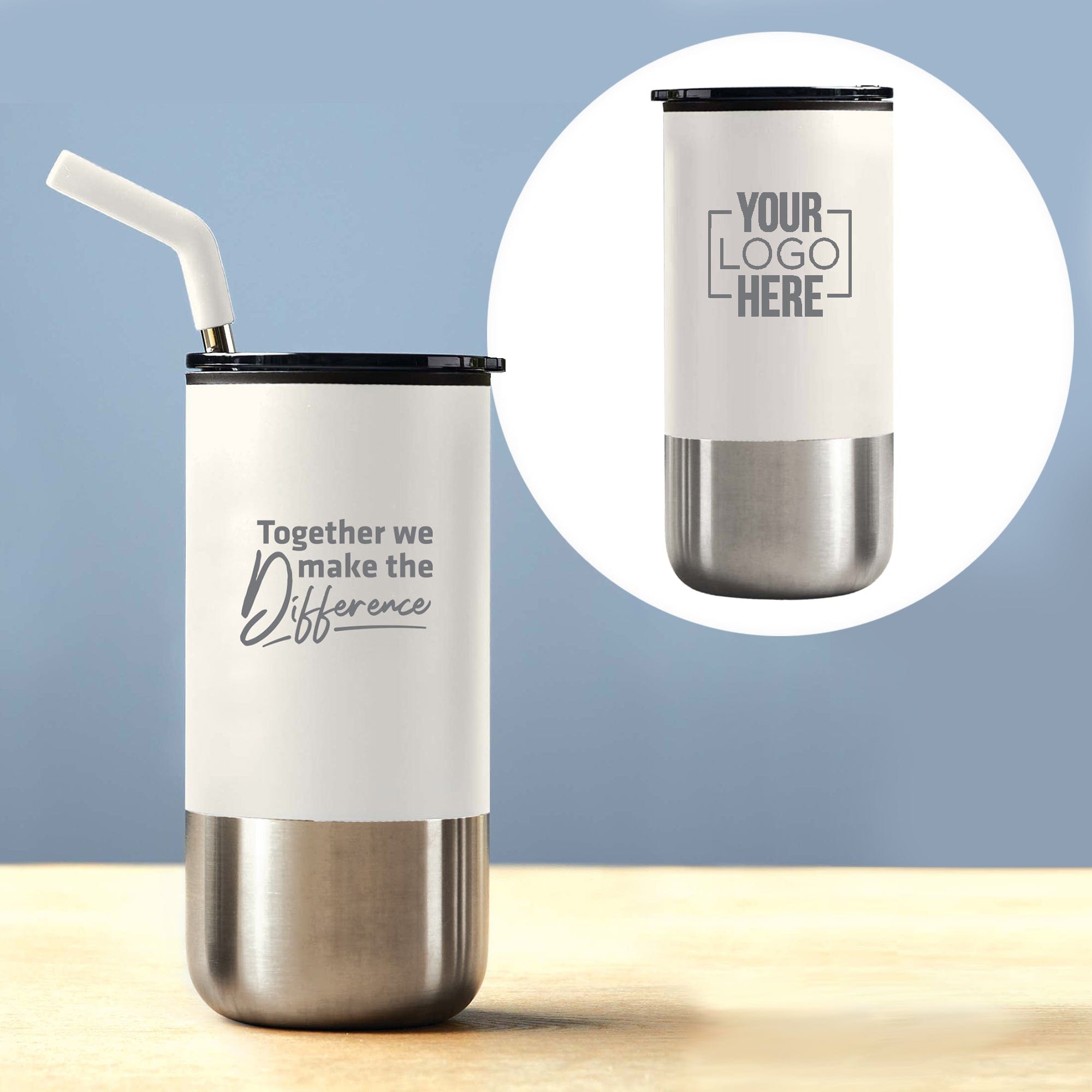 Drink your favorites hot or cold! Double-wall construction featuring sleek two tone design includes a straw and a press-on lid with slide-closure for easy use....
