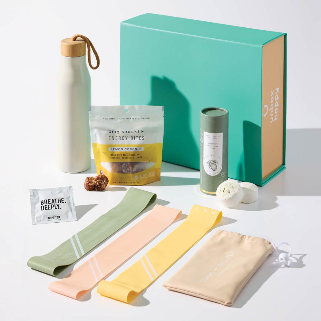 Promote workplace wellness with a gift set that’s all about finding balance. Inside, they’ll discover a trio of tone + sculpt resistance bands to boost those workouts, refreshing Breathe Deeply towelettes for a quick rejuvenation, a sleek and sustainable water bottle to stay hydrated in style, soothing shower steamers for a spa-like escape, and a pouch of lemon coconut energy bites to keep them energized and ready to conquer the day. Expertly curated and beautifully packaged in our signature Delightly gift box, this set is perfect for encouragement, corporate events, anniversaries, client gifts, or even just because— we’re committed to supporting the health and wellness of our team members!