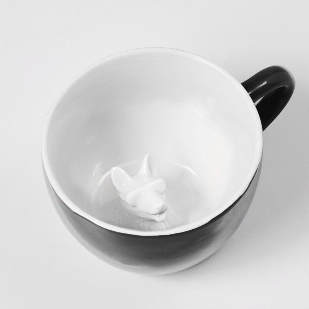 - 3D German shepherd figure inside the mug is revealed as the drink is enjoyed