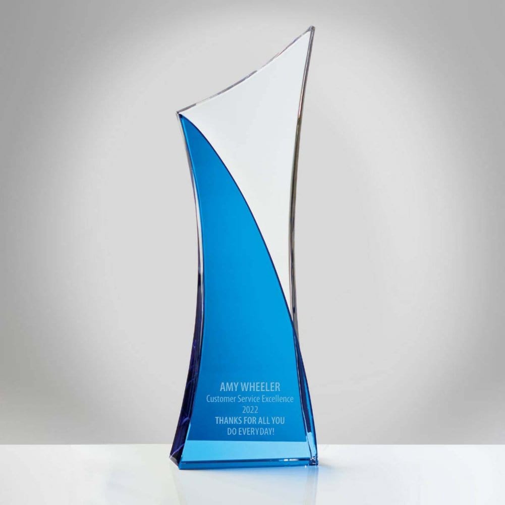 Their achievements won't be missed with this crystal trophy, perfectly complemented with a gorgeous blue accent. Choose a pre-written verse or graphic title and add...