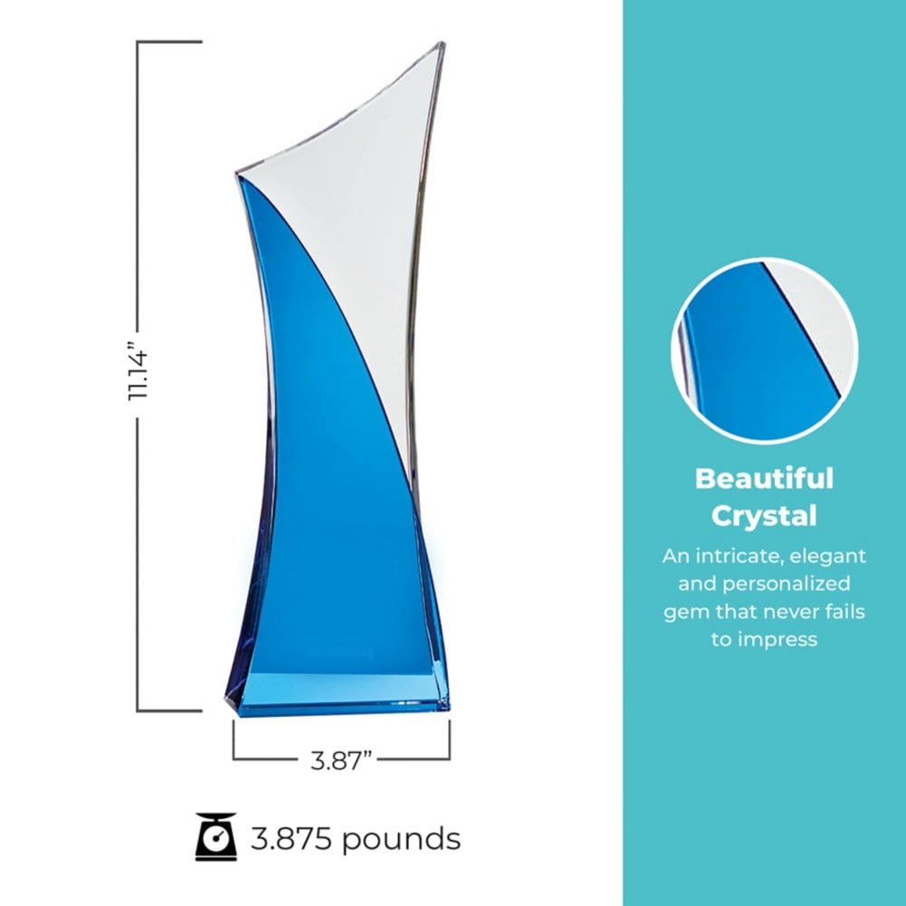 Their achievements won't be missed with this crystal trophy, perfectly complemented with a gorgeous blue accent. Choose a pre-written verse or graphic title and add your personalization - all included in the price.
