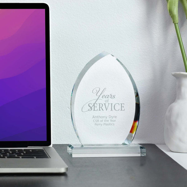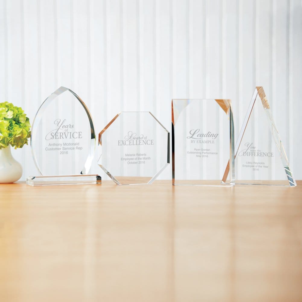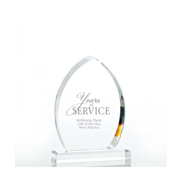 Simple design puts the emphasis on this trophy's high quality crystal and affordable pricing. Choose from a variety of graphic titles and add up to three lines of personalization to create your perfect award. Add your custom award sentiment or logo for a one-time $35 setup fee.