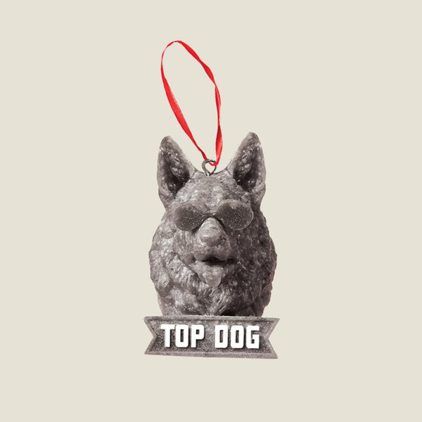 Celebrate your team’s top performers with the We Appreciate Your Character! Ornament - Top Dog. Inspired by our best-selling stone trophies, this ultra-unique ornament features a playful German Shepherd wearing sunglasses, along with the phrase "Top Dog." Full of punny appreciation and pop-culture charm, this ornament is a fun way to recognize your team's achievements and spread a little joy. Complete with a red ribbon for easy hanging, it’s a standout piece that can be displayed year-round, whether at the office or at home.