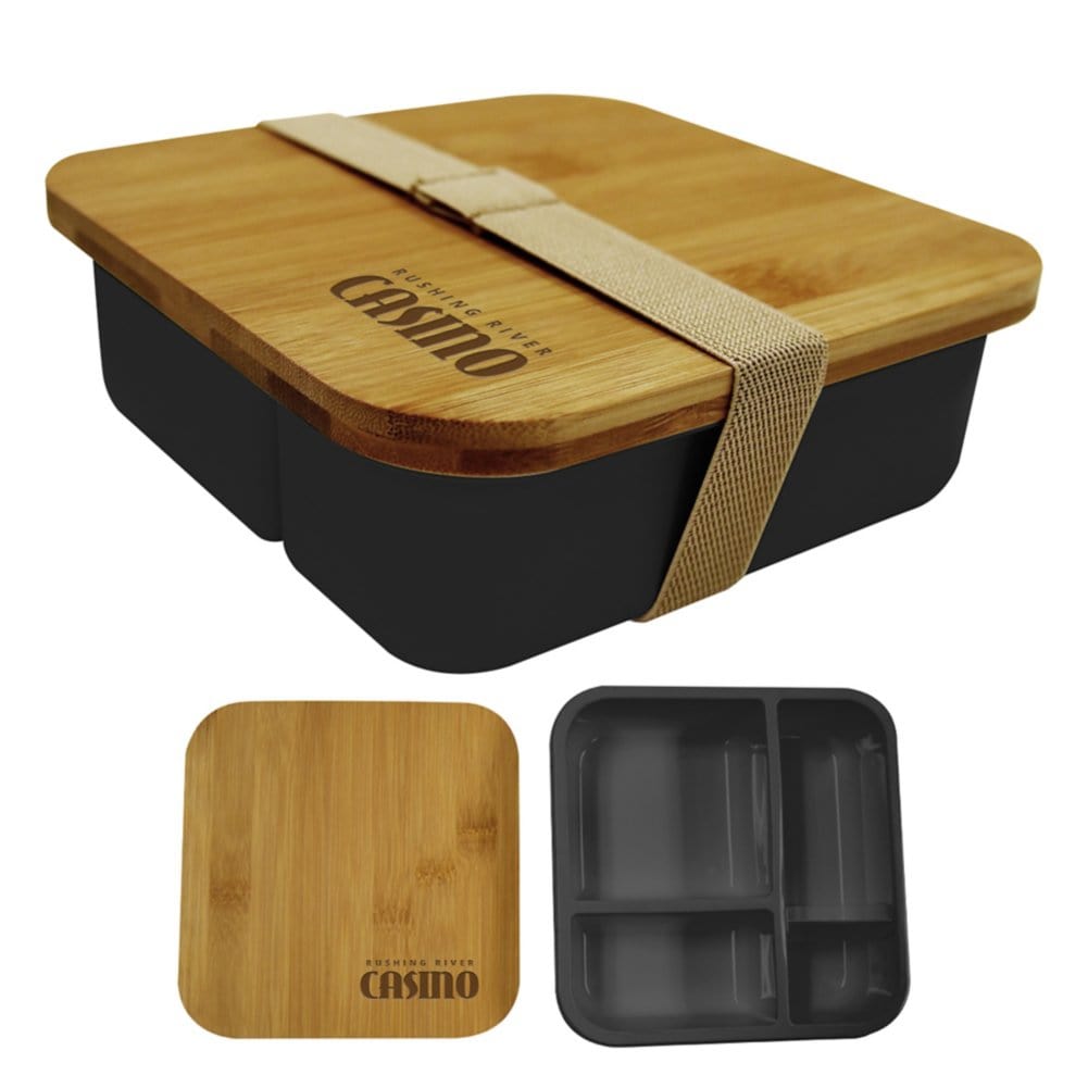 Add Your Logo: Large Bento Meal Box-BLACK WITH BAMBOO LID