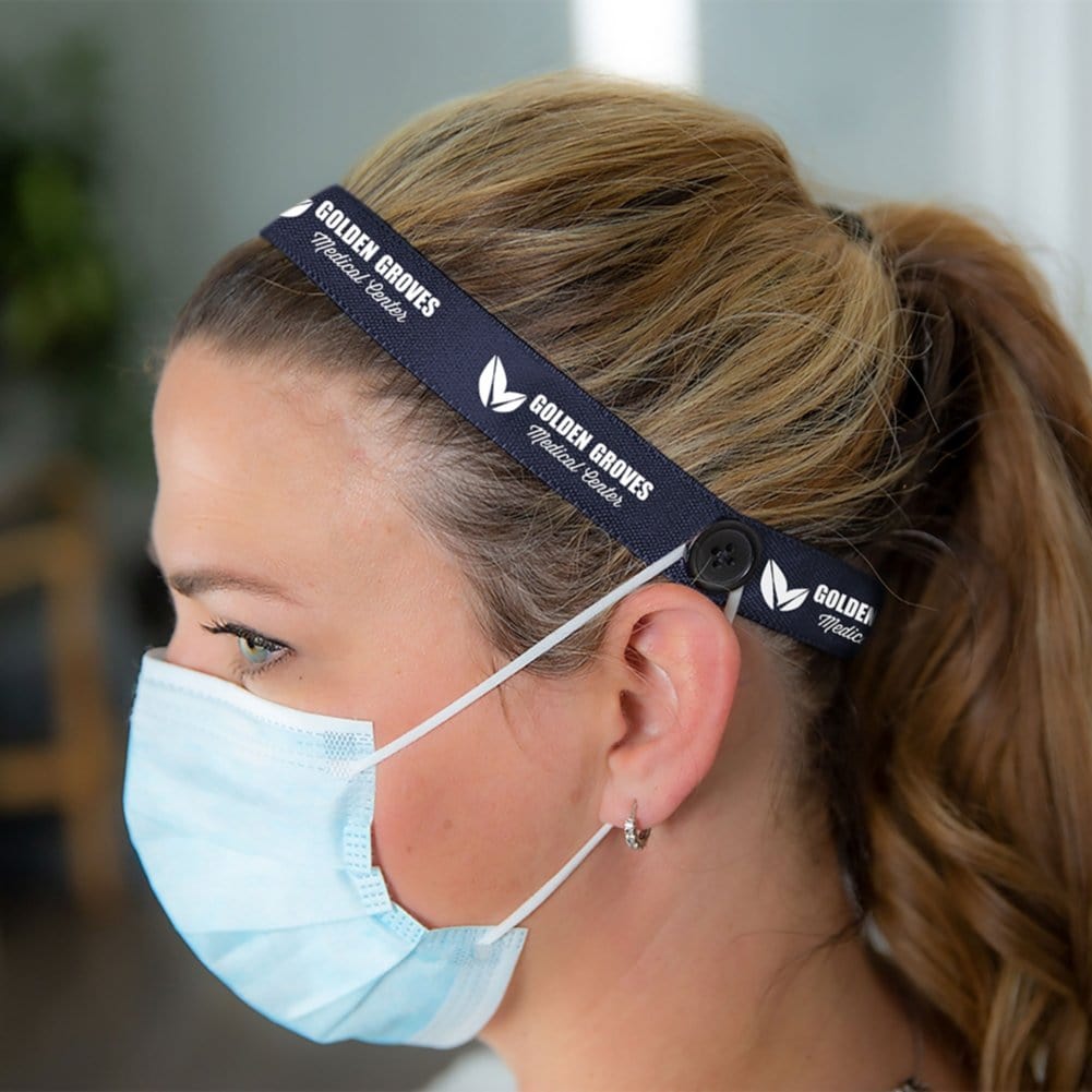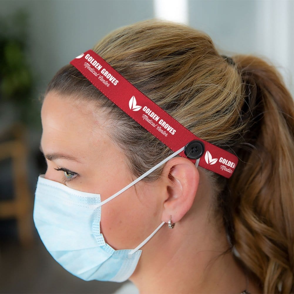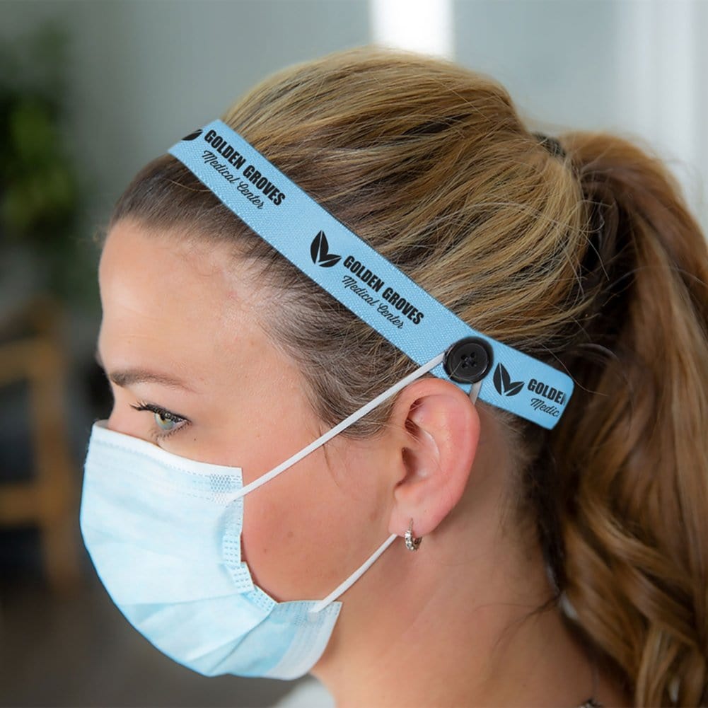 Save their ears while they save lives with this mask buddy! This item doubles as a headband to keep hair back and as an ear-saver by allowing their PPE to hook onto the buttons instead of their ears. With a dye-sublimated imprint, you can make your brand mean something truly special.