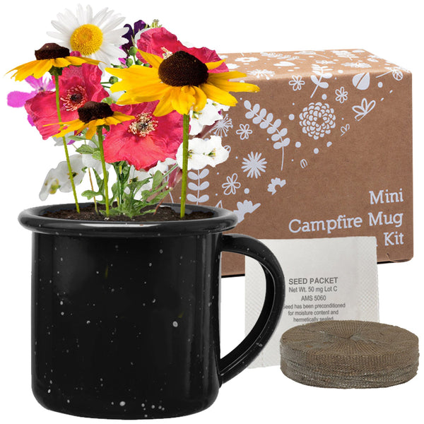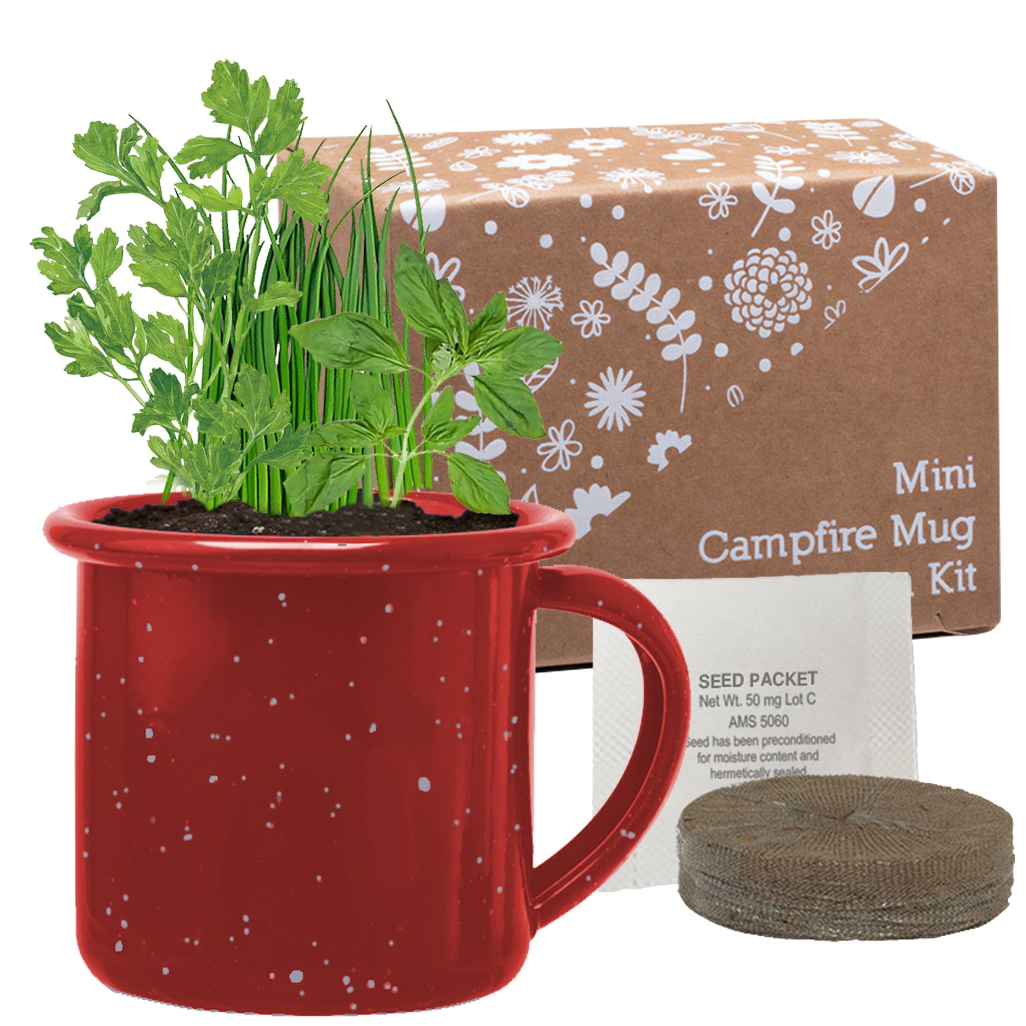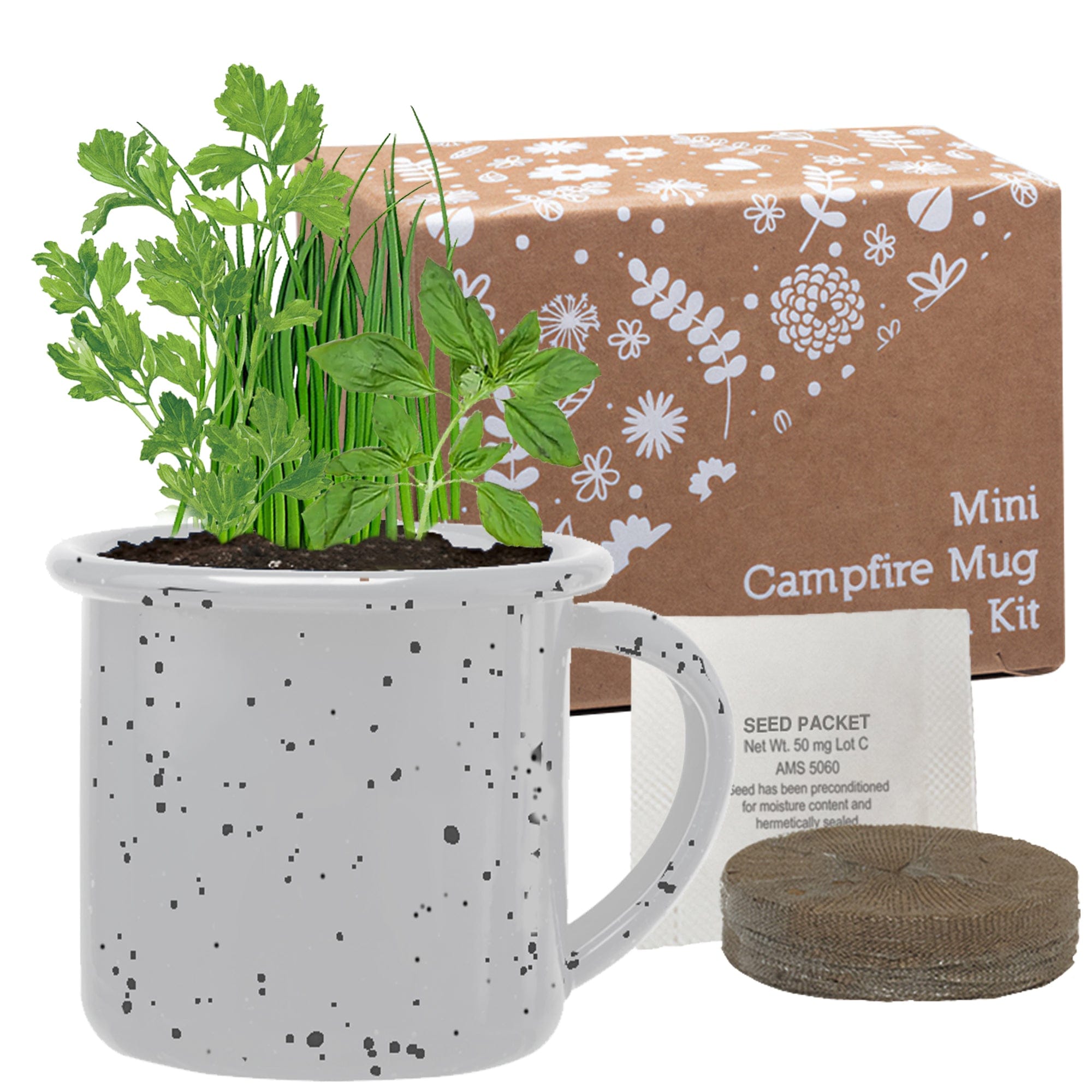 • Each kit comes with a mini campfire mug planter, seed packet, peat pellet, and planting instructions.